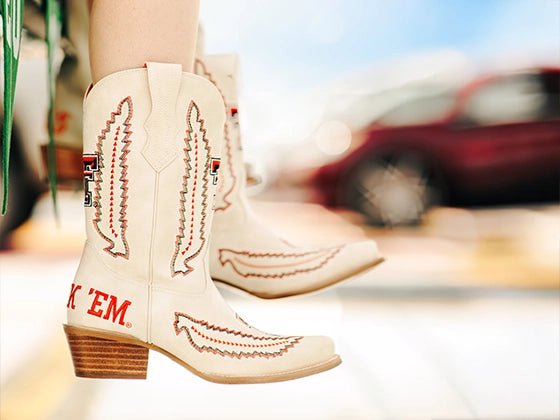 Such a cute boot! The white color really makes a statement. Can't wait to cheer my team on in these