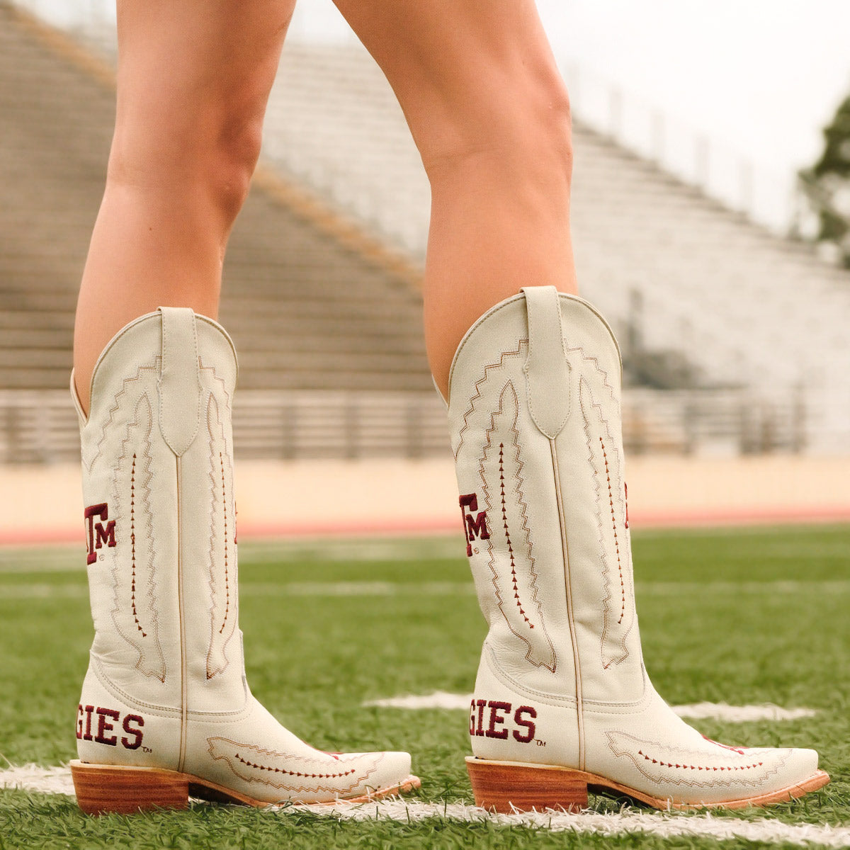 Such a cute boot! The white color really makes a statement. Can't wait to cheer my team on in these