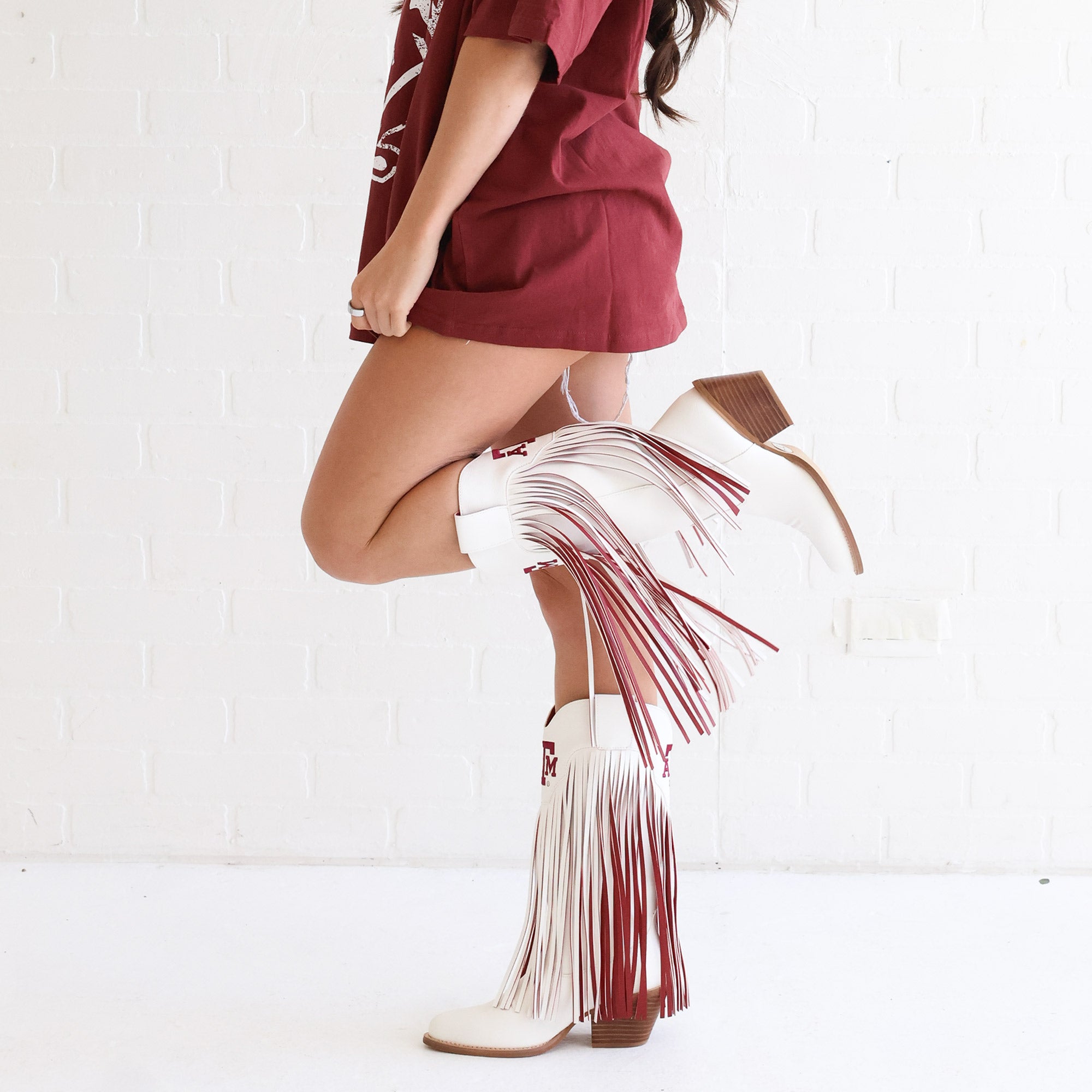 Such a cute boot! The white color really makes a statement. Can't wait to cheer my team on in these