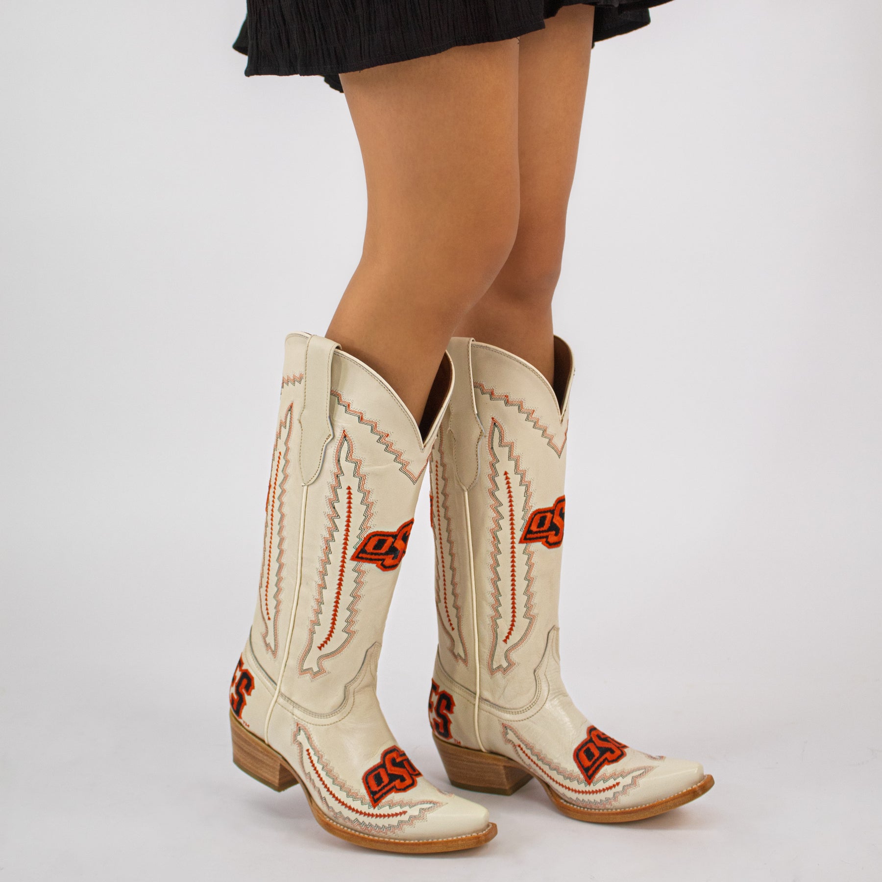 Our best seller for a reason, The Naomi is the perfect mix of school pride and Southern charm. Featuring vibrant orange and black stitch patterns and officially licensed logos, these boots are designed to stand out on game day and beyond. More than just footwear, theyβre a bold expression of your Cowboys spirit with every step.Β Go Pokes!