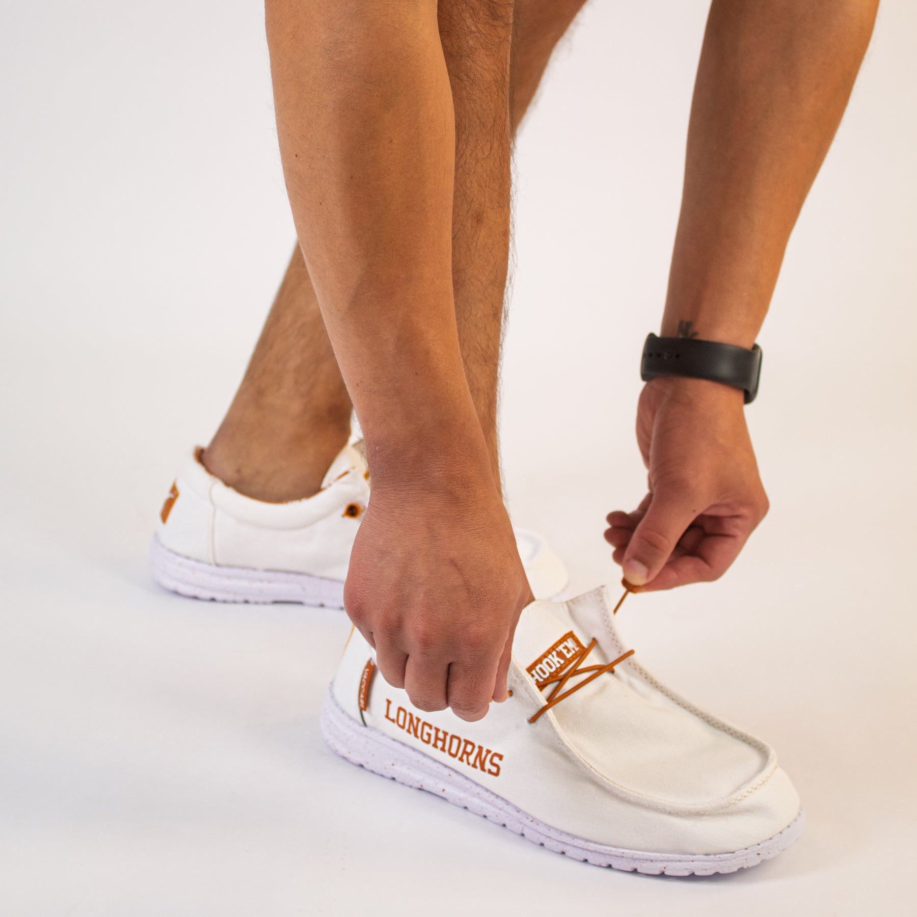 Take your Longhorn pride to the next level with the Nate, officially licensed for the University of Texas. This casual slip-on shoes is made with breathable canvas and features a lightweight flexible outsole and elastic laces. Both comfortable and stylish, these slip-on shoes feature officially licensed logos for a touch of school spirit. Whether you're cheering in the stands on gameday or walking around campus, the lightweight construction and cushioned insoles ensure all day comfort. Hook 'Em, Horns!