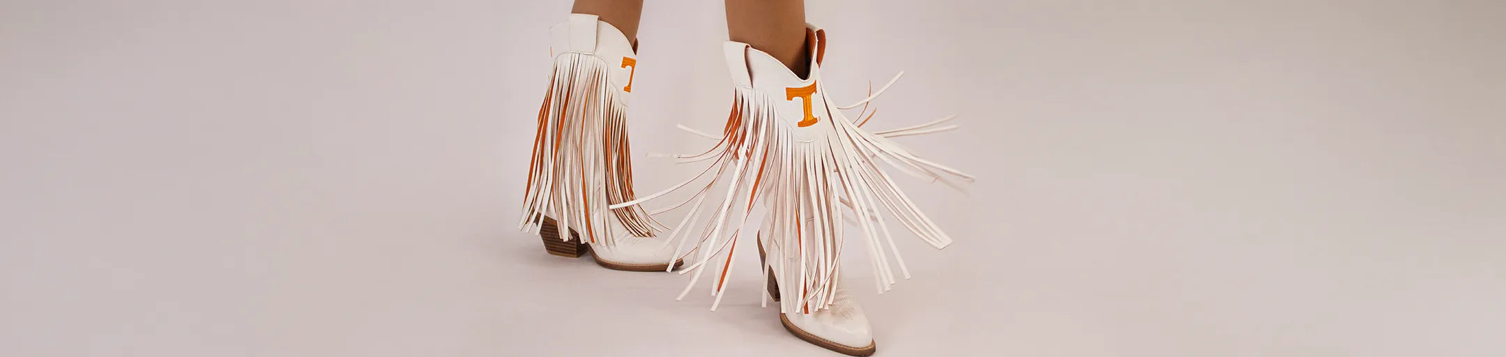 University of Tennessee Kacey White Fringe Boot By V By Vaccari Women's University of Tennessee White Fringe Cowgirl Boots Kacey by V by Vaccari