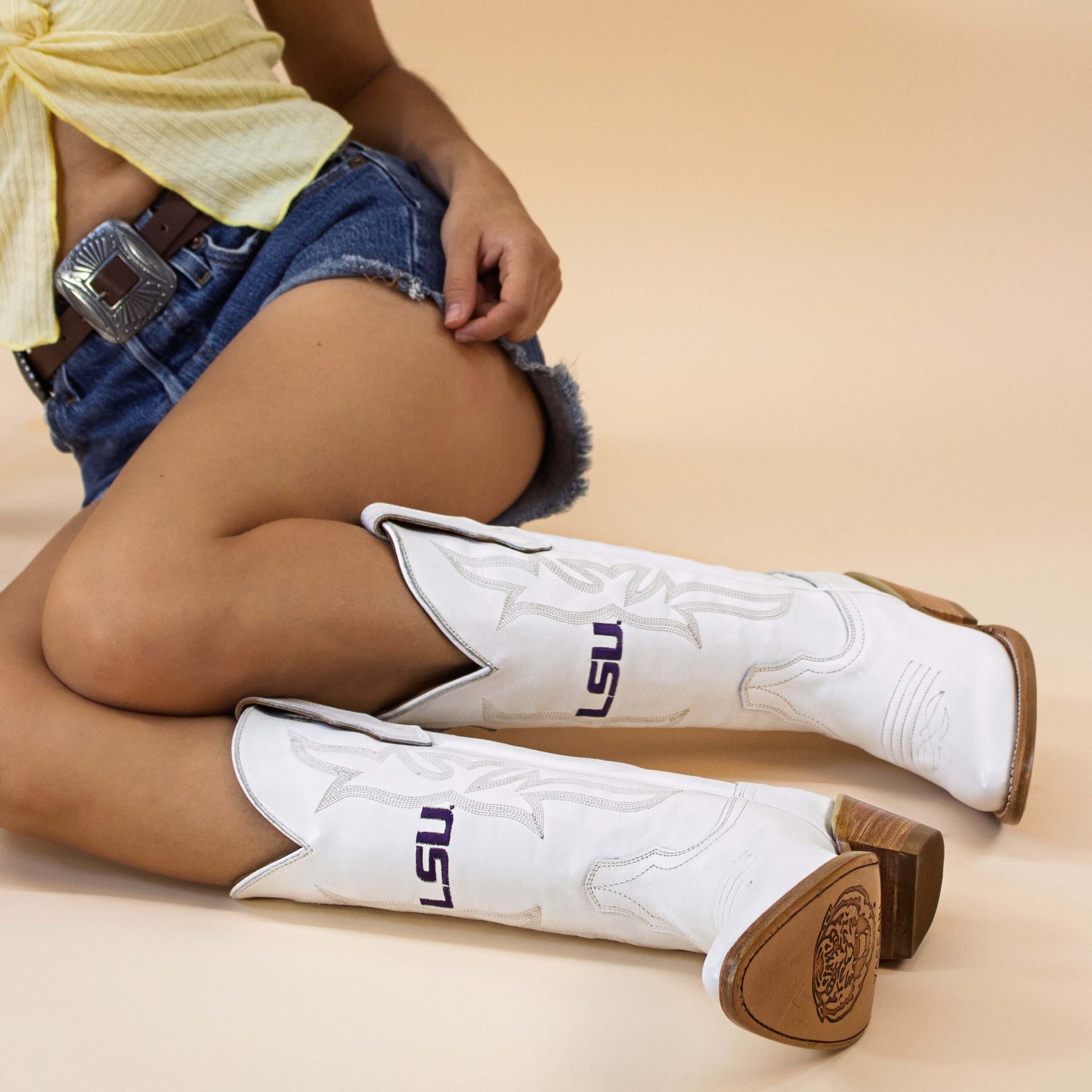 A fan favorite, the Leighton cowgirl boots perfectly blend team pride and western style. The perfect choice for game days, tailgates and everything in between, they're crafted for all-day comfort so you can show your Tigers pride with every step. Geaux Tigers!