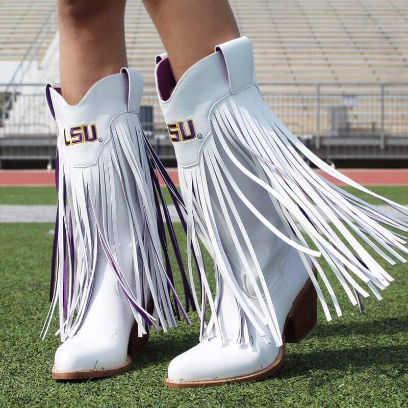 Louisiana State University Kacey White Fringe Boot By V By Vaccari Women's Louisiana State University White Fringe Cowgirl Boots Kacey by V by Vaccari