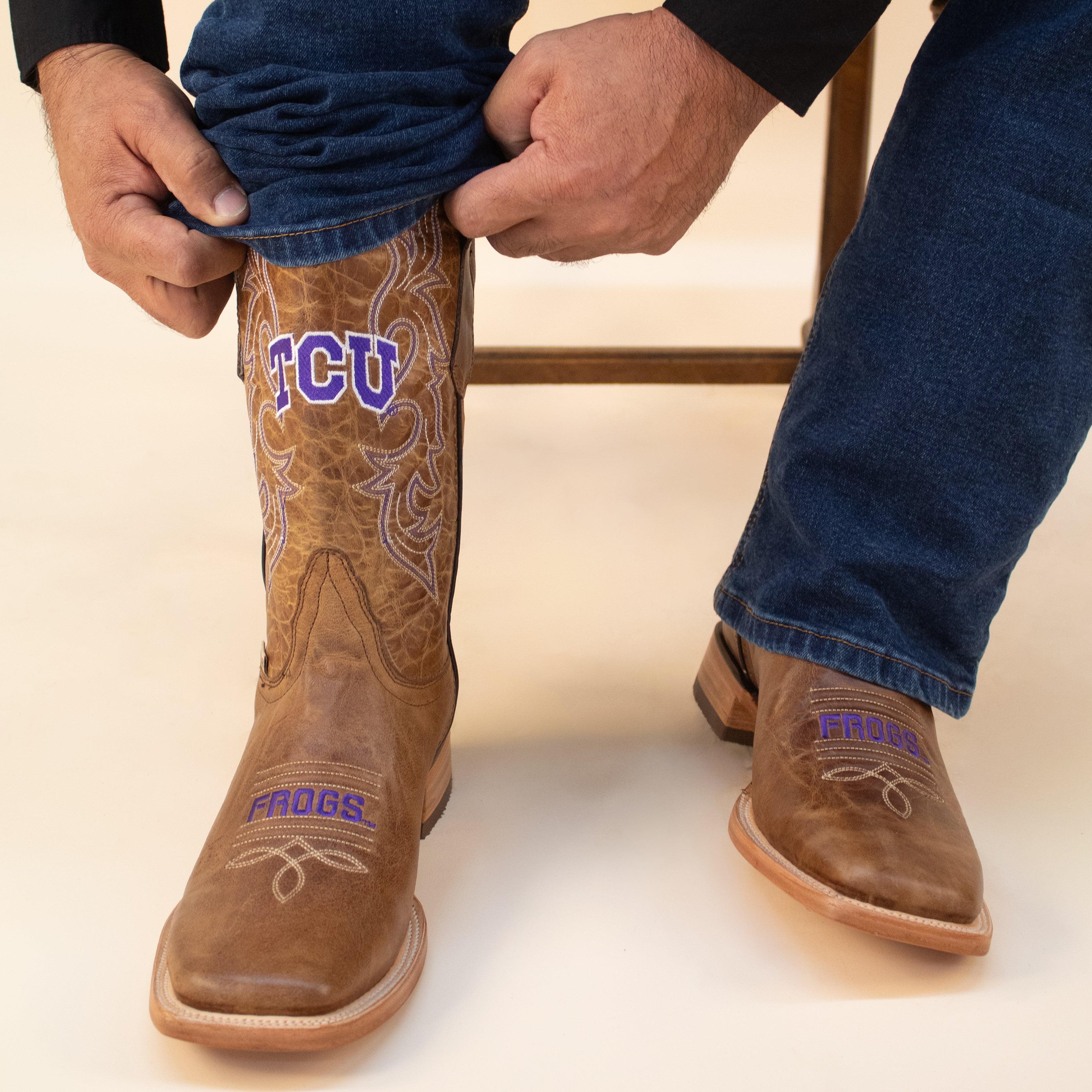 Men's TCU Horned Frogs Tan Leather Square Toe Cowboy Boots by Vaccari Men's TCU Horned Frogs Tan Leather Square Toe Cowboy Boots by Vaccari