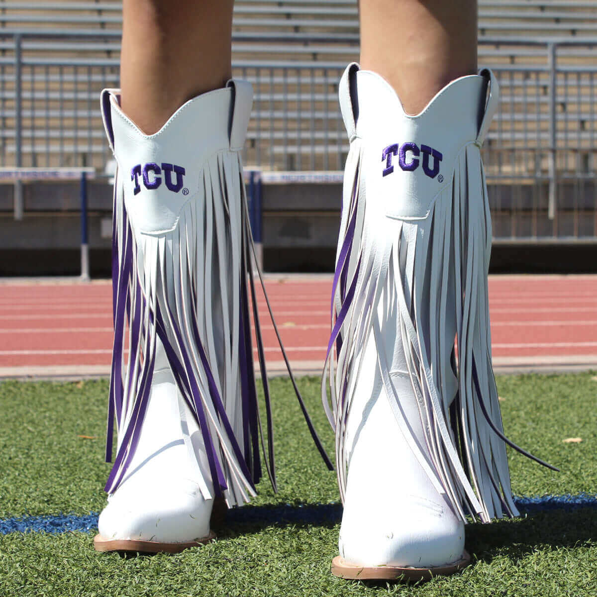 Texas Christian University Kacey White Fringe Boot By V By Vaccari Texas Christian University Kacey White Fringe Boot By V By Vaccari