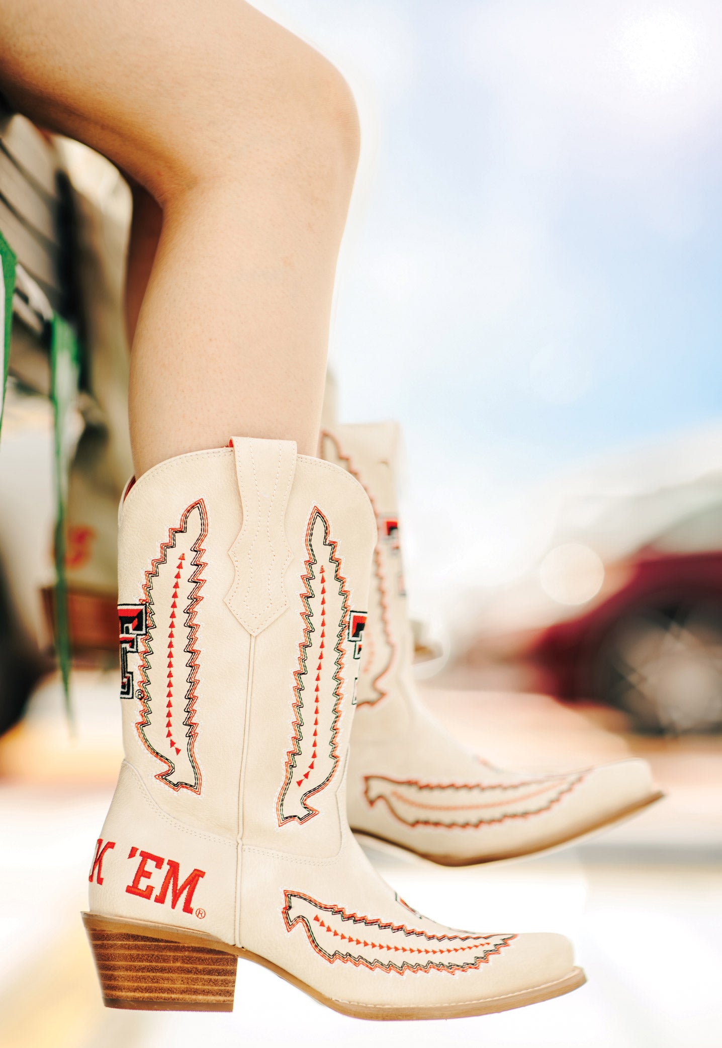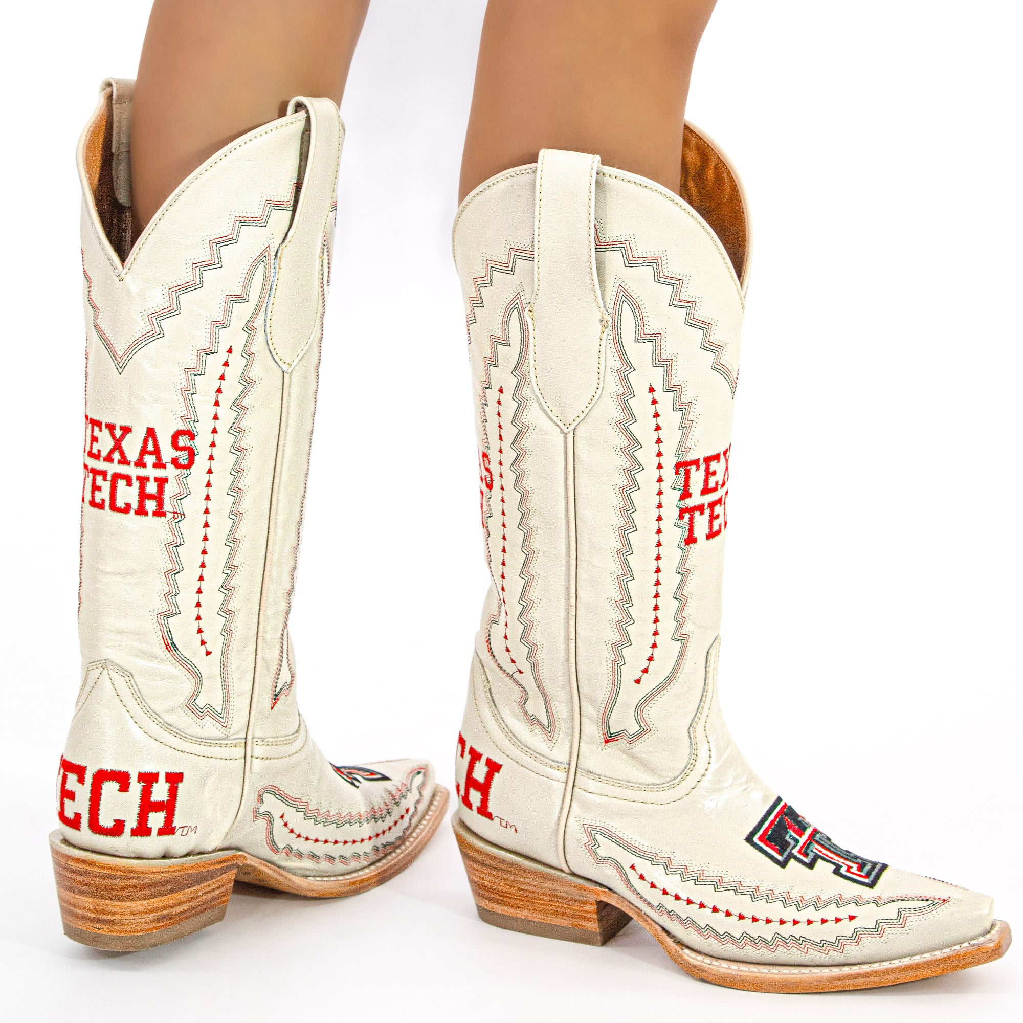 Women's Texas Tech Red Raiders All White Pointed Toe Cowgirl Boots Leighton Vaccari University Women's Texas Tech Red Raiders All White Pointed Toe Cowgirl Boots Leighton Vaccari University