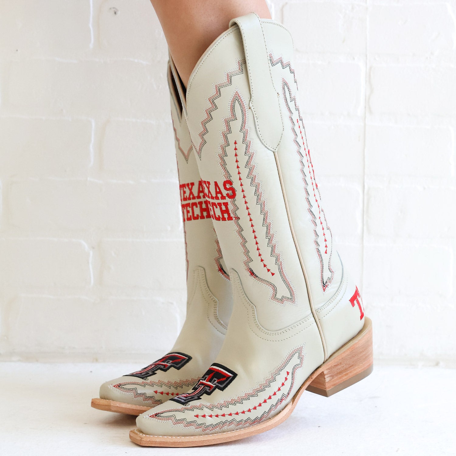 Women's Texas Tech Red Raiders Bone Leather Cowgirl Snip Toe Boots by Vaccari Women's Texas Tech Red Raiders Bone Leather Cowgirl Snip Toe Boots by Vaccari