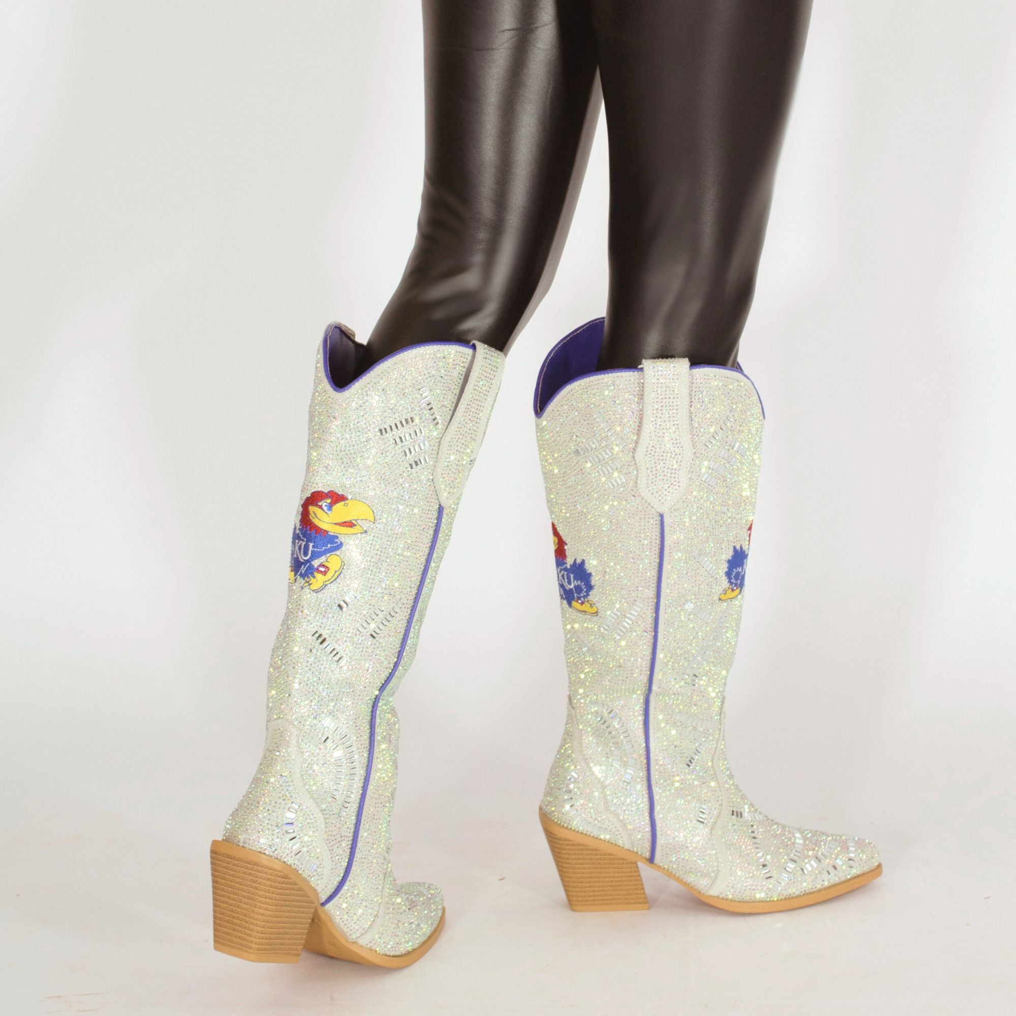 Show your pride with a little extra shine. TheΒ Spirit That Sparkles Collection by V by Vaccari brings together game-day energy and modern glam in every step. Crafted from premium PU leather and detailed with crystal accents, these boots were made to stand out, from the stadium to a night out. Rock Chalk Jayhawks!