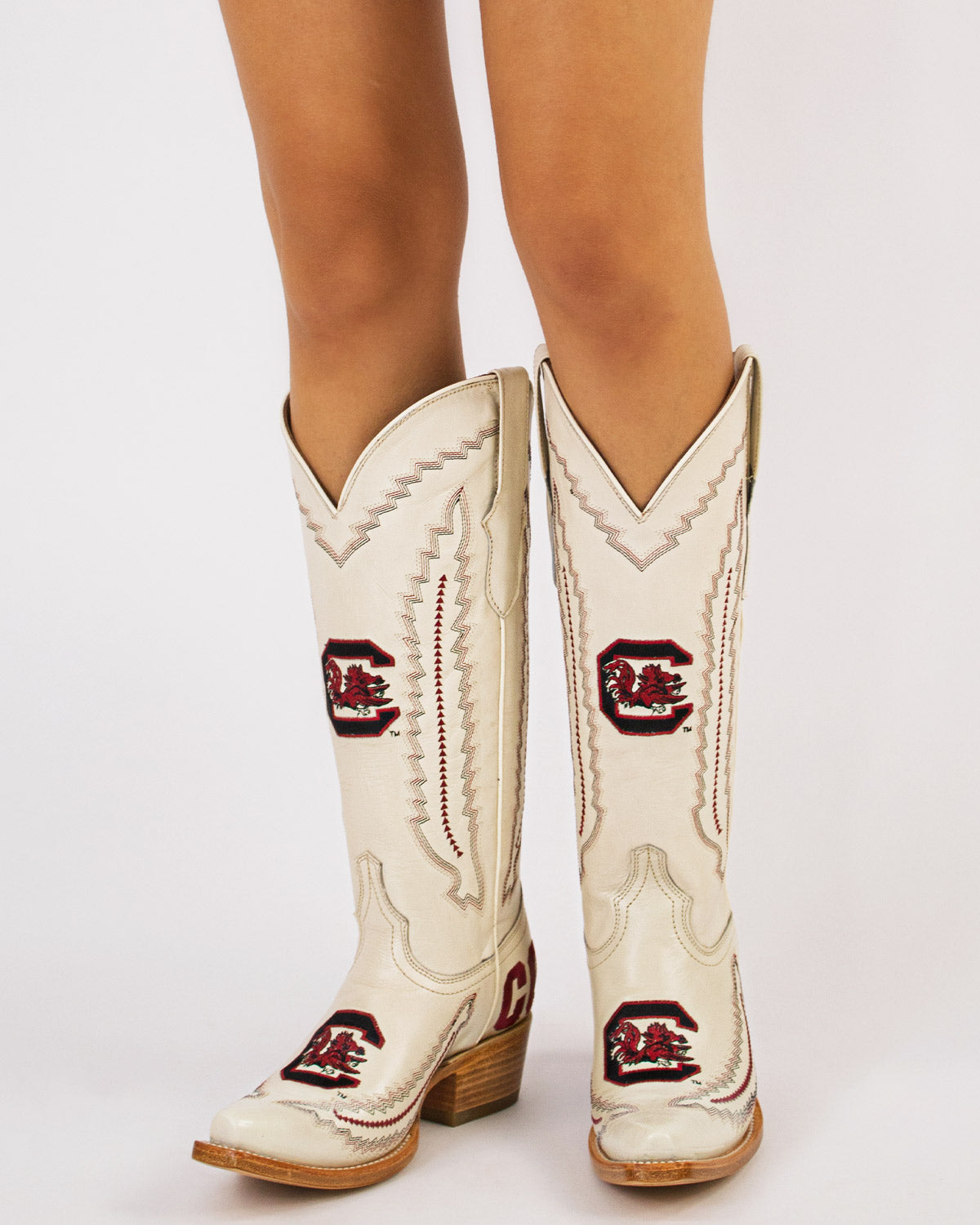 Show your school spirit in style with the officially licensed University of South Carolina Blair boot. Crafted from premium PU leather, this boot offers the timeless look and feel of genuine leather, all at an affordable price. Perfect for Gamecocks fans who want to look great without breaking the bank.