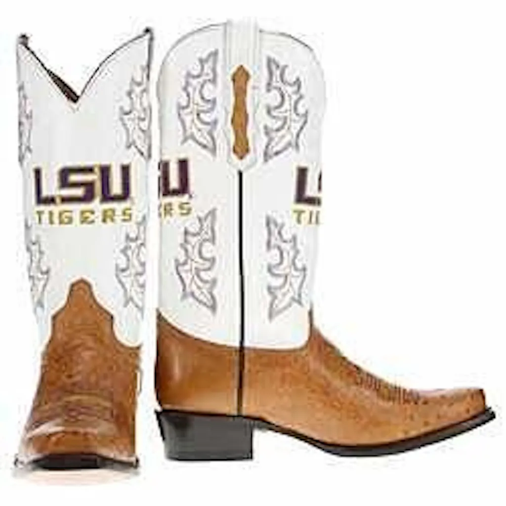Officially licensed for the University of Arkansas, these smooth ostrich cowboy boots combine refined style and classic western charm. With official logos on the upper and red accented toe stitching, they let you show off your Razorbacks pride with every step. Go Hogs!