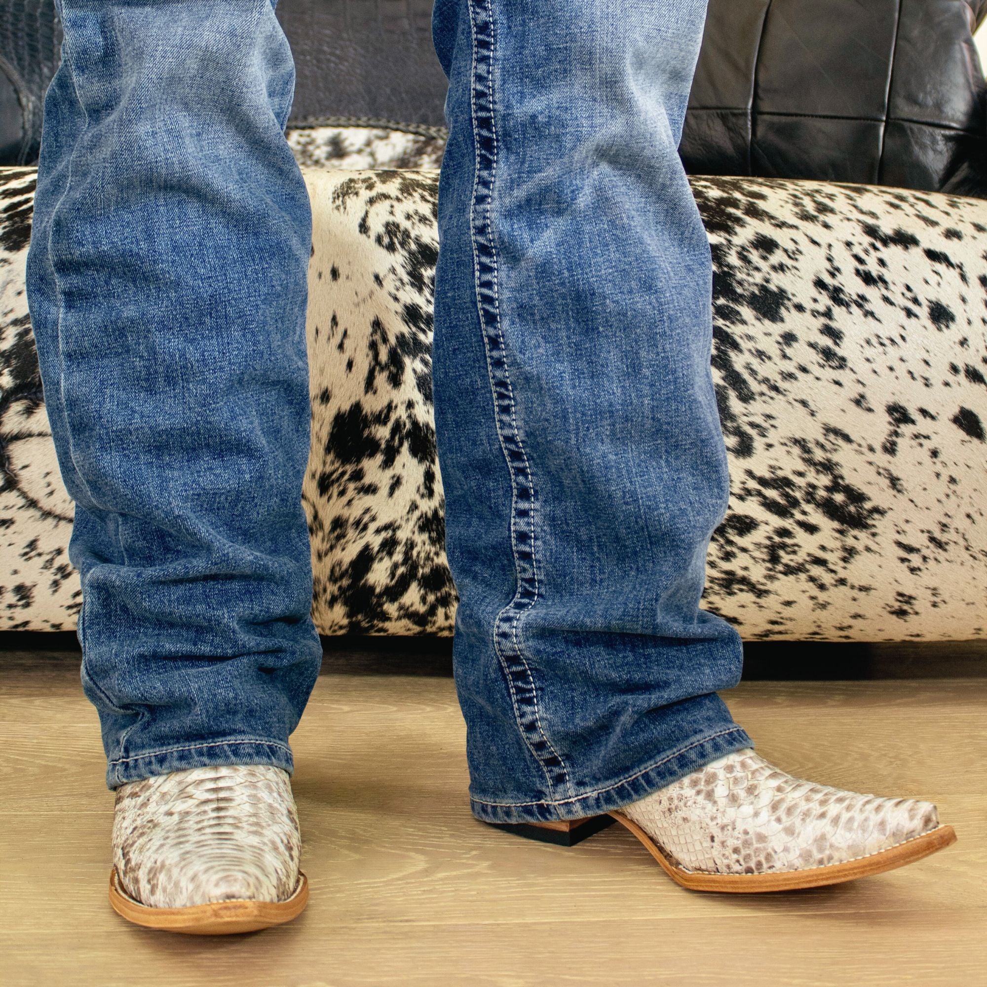 These men's cowboy boots are a statement of luxury and style. The Crockett boots feature genuine python vamps, intricate hand-cording detail, and python inlaid accents for a touch of sophistication and exotic flair. These boots are perfect for those looking for a unique and high-end addition to their cowboy boots collection.