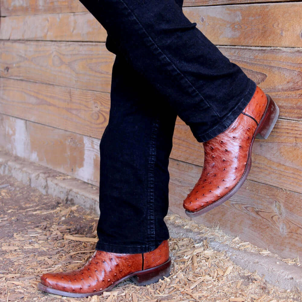 The Henry Full Quill Ostrich Boots exemplify true western craftsmanship. These boots radiate luxury and style, thanks to their full quill ostrich vamp that adds an unmatched level of sophistication. They are further adorned with intricate fancy stitching, a full quill ostrich inlay accent on the uppers, and Full Quill Ostrich inlaid earpulls.