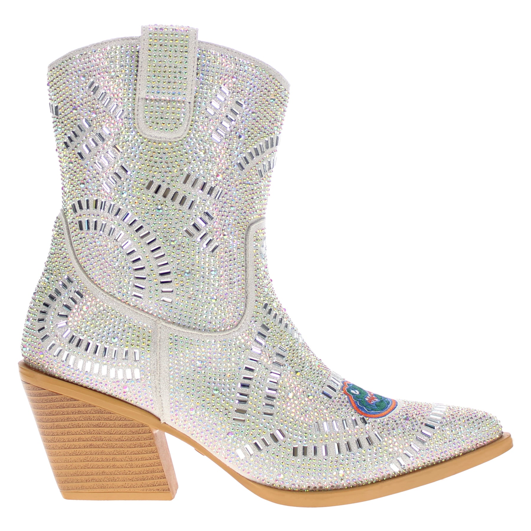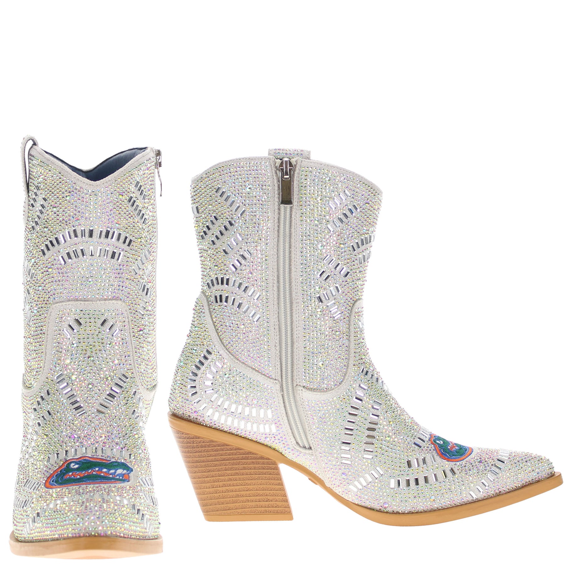 Show your pride with a little extra shine. TheΒ Spirit That Sparkles Collection by V by Vaccari brings together game-day energy and modern glam in every step. Crafted from premium PU leather and detailed with crystal accents, these boots were made to stand out, from the stadium to a night out. Go Gators!