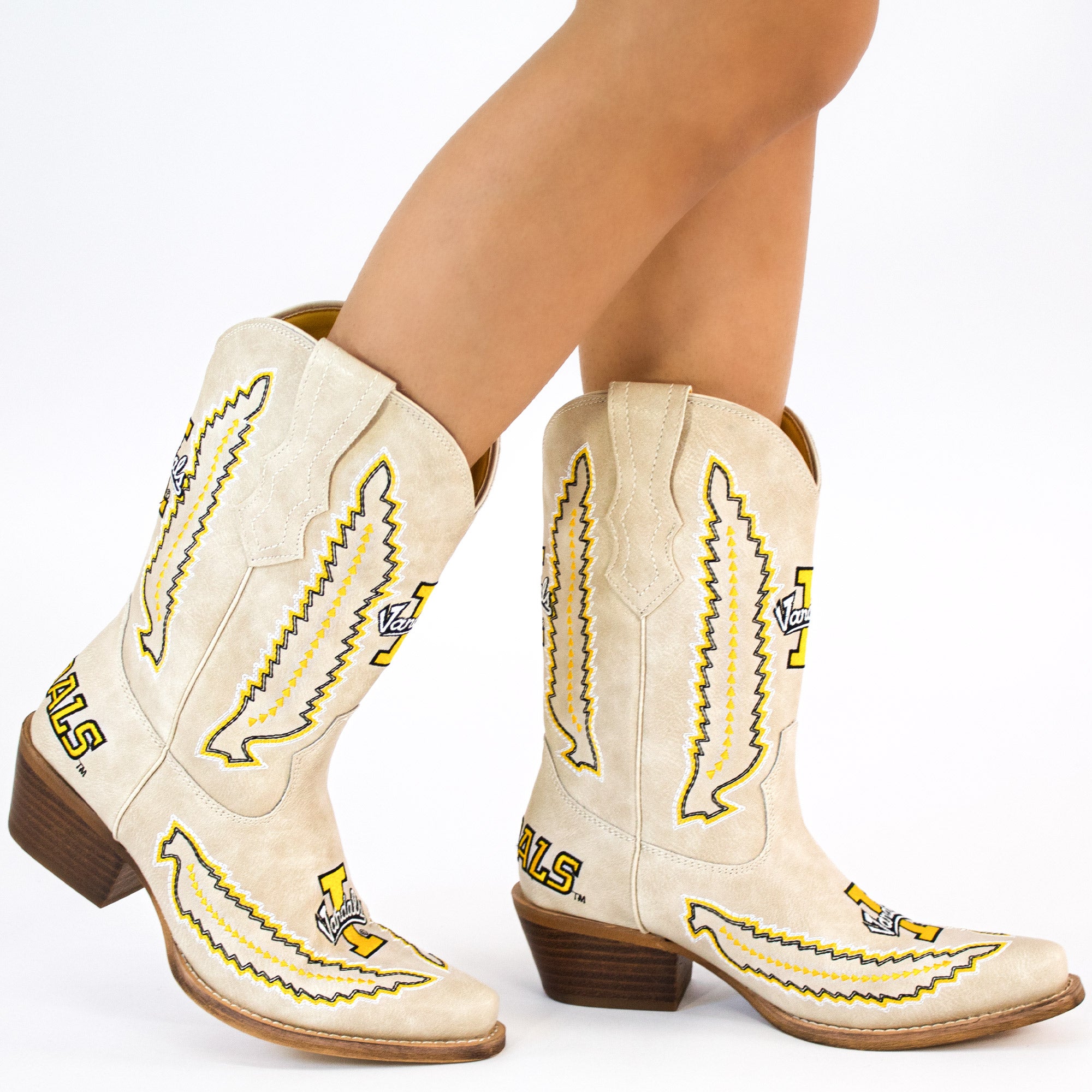 Show your pride with a little extra shine. The Spirit That Sparkles Collection by V by Vaccari brings together game-day energy and modern glam in every step. Crafted from premium PU leather and detailed with crystal accents, these boots were made to stand out, from the stadium to a night out. Go Vandals!