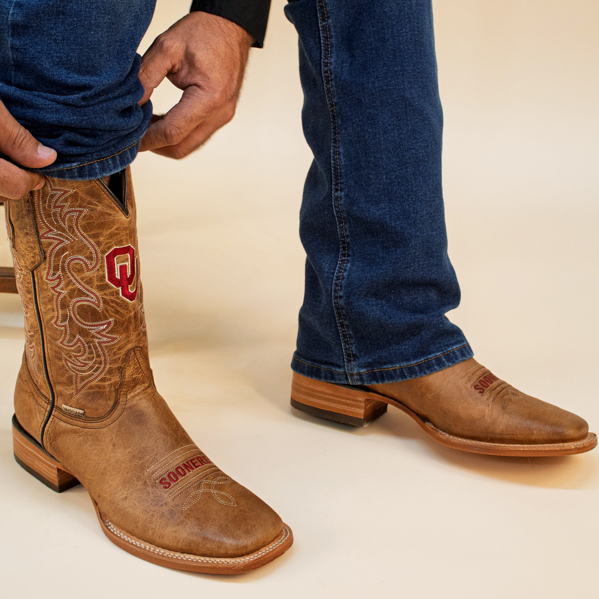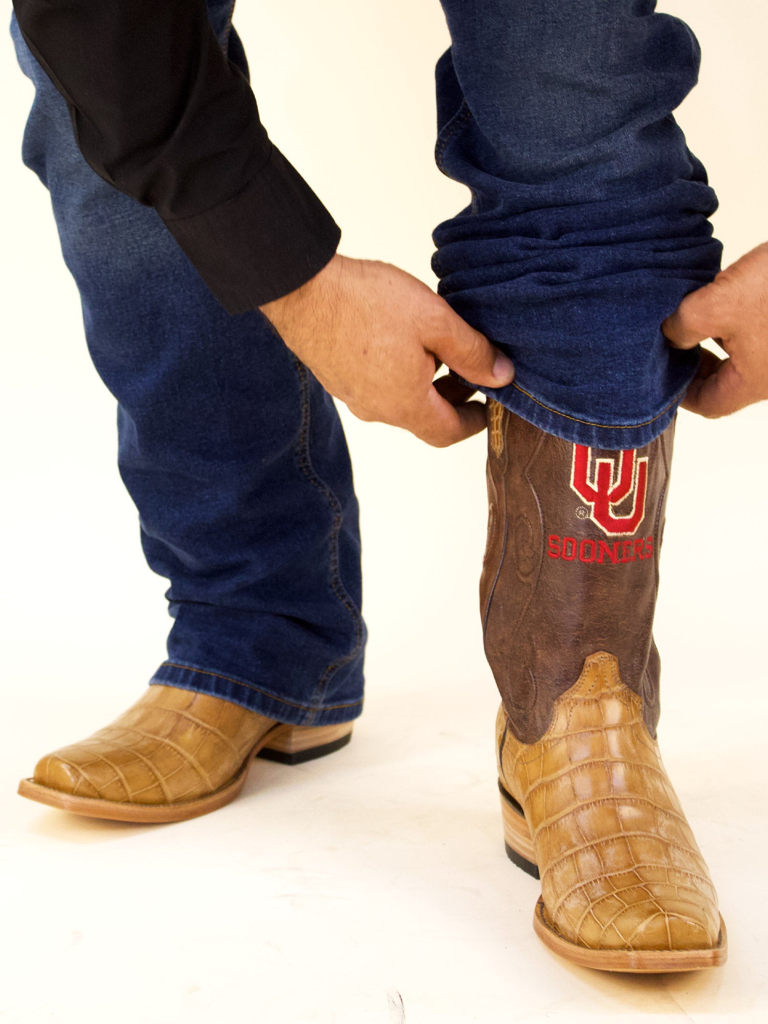 The James cowboy boots are the ultimate choice for fans looking to elevate their game day style. Featuring a classic hand-corded upper and exotic American Alligator vamp, they perfectly blend tradition luxury, and Sooners pride. Step up your style and stand out in the stands. Boomer Sooner!