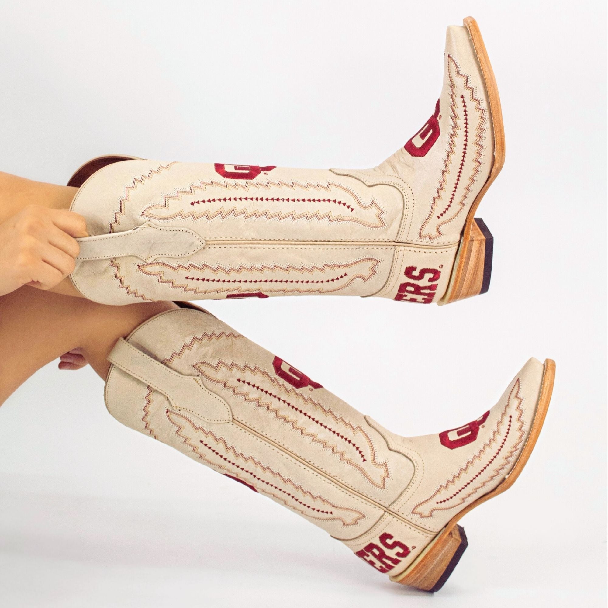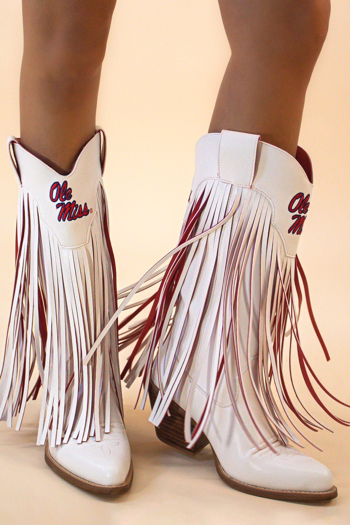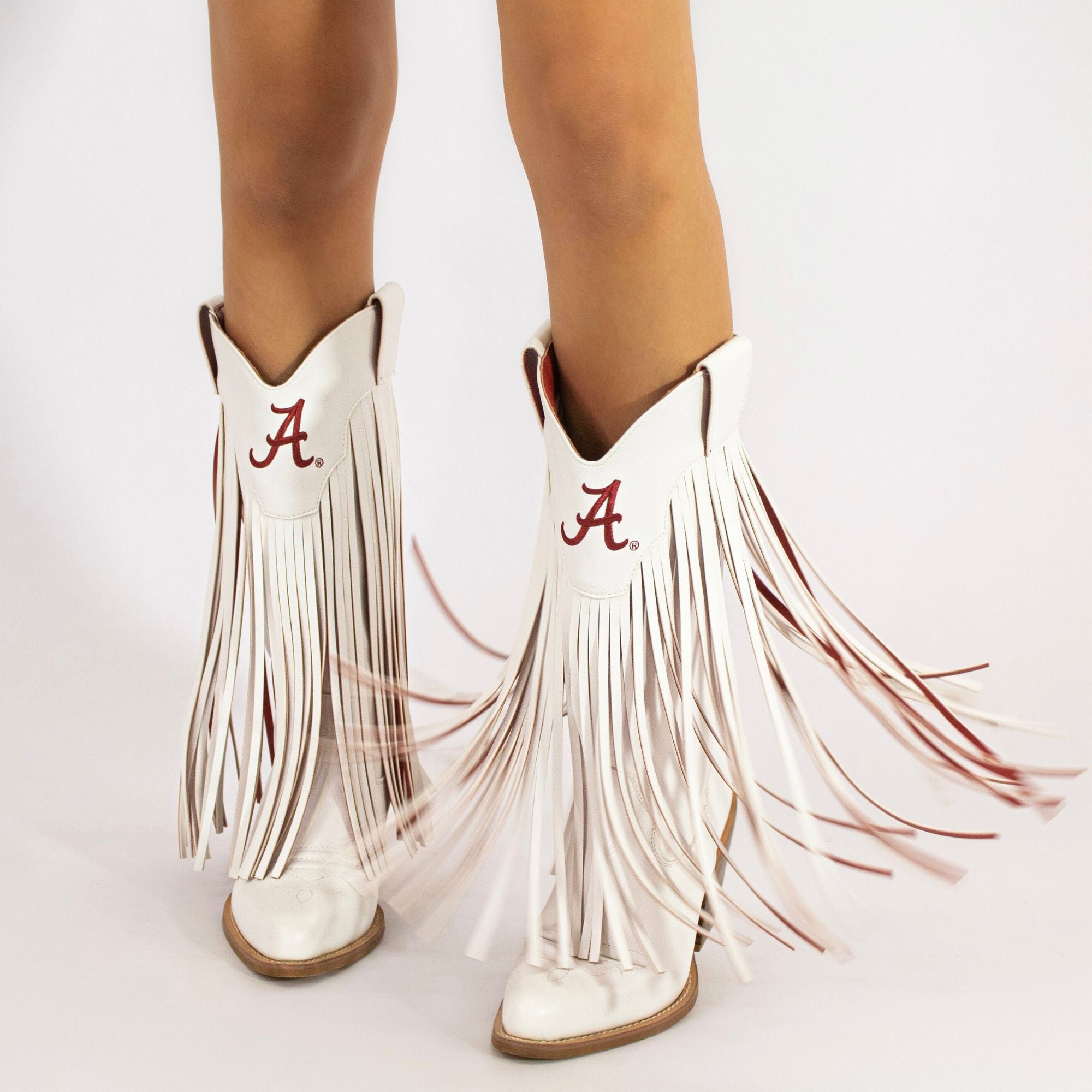 Show your Red Raider pride in style with the Kacey cowgirl boots, officially licensed for Texas Tech University. Featuring playful fringe that reveals bold school colors, these PU leather boots are a fun, budget-friendly way to stand out at tailgates or on the dance floor.