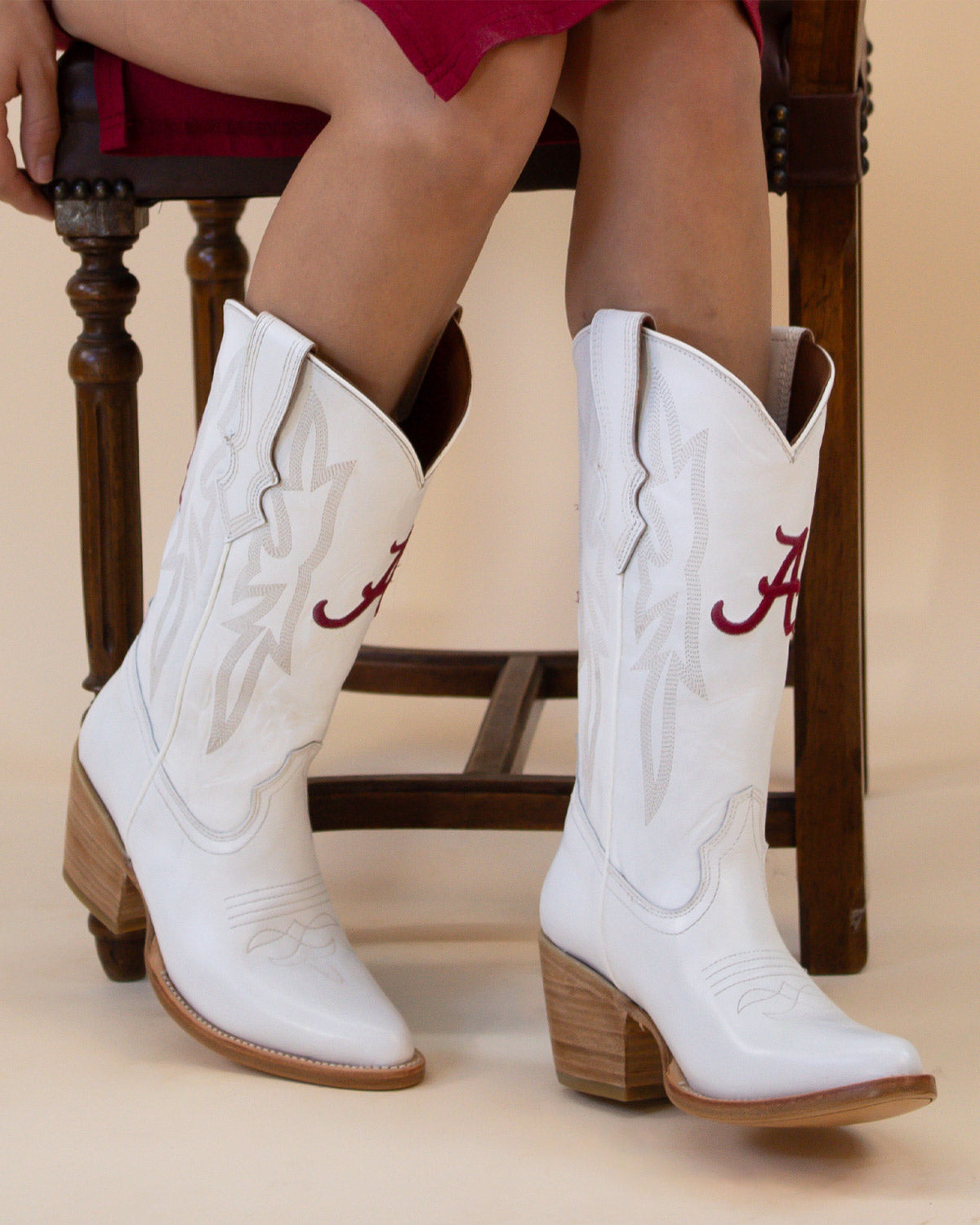 A fan favorite, the Leighton cowgirl boots perfectly blend team pride and western style. The perfect choice for game days, tailgates and everything in between, they're crafted for all-day comfort so you can show your Crimson Tide pride with every step. Roll Tide!