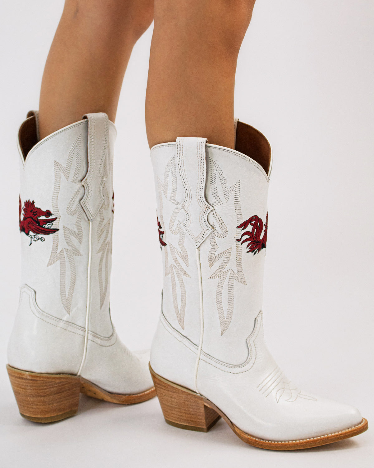 A fan favorite, the Leighton cowgirl boots perfectly blend team pride and western style. The perfect choice for game days, tailgates and everything in between, they're crafted for all-day comfort so you can show your Razorbacks pride with every step. Go Hogs!