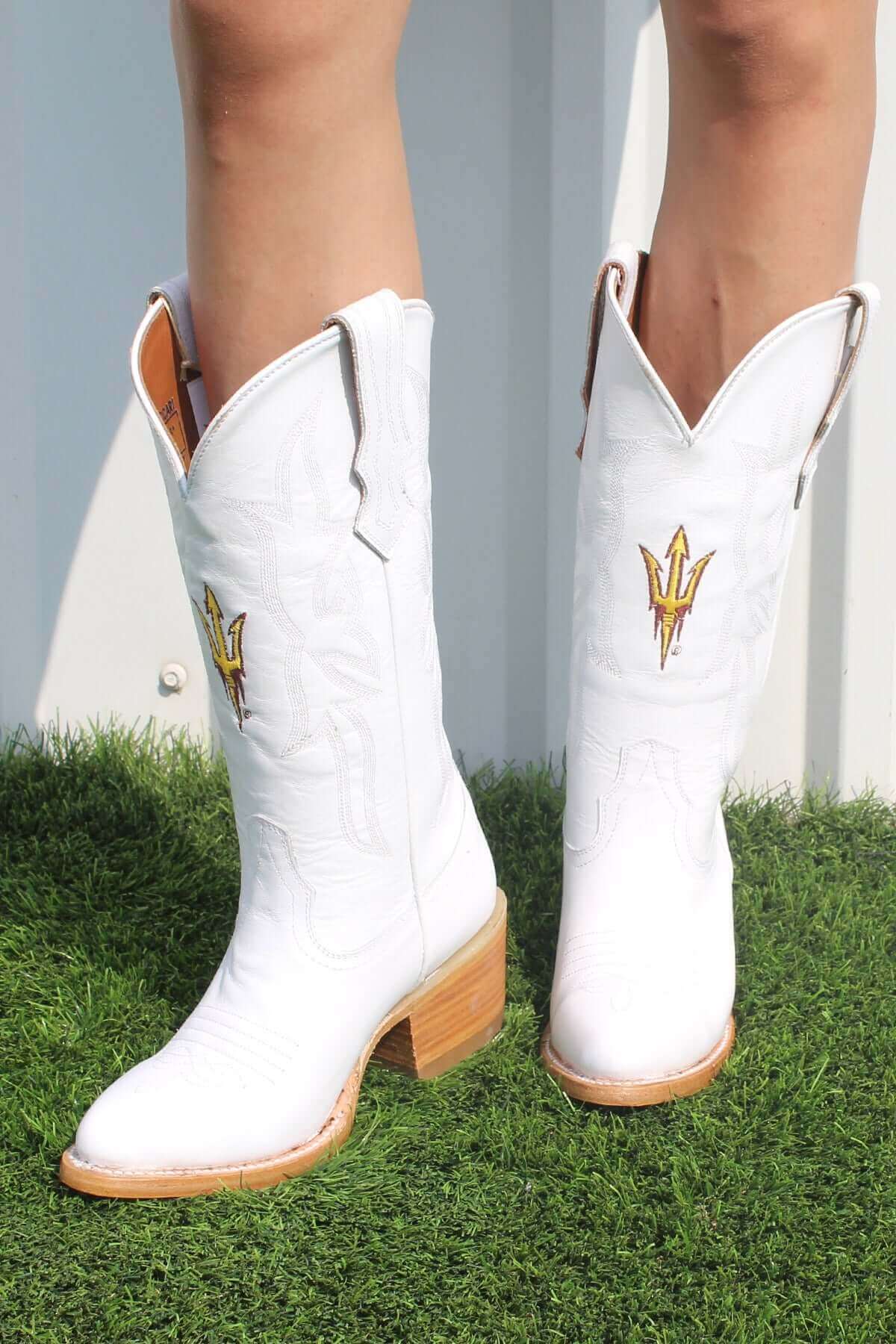 A fan favorite, the Leighton cowgirl boots perfectly blend team pride and western style. The perfect choice for game days, tailgates and everything in between, they're crafted for all-day comfort so you can show your Sun Devils pride with every step. Forks Up!