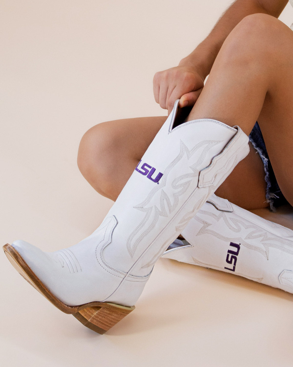 A fan favorite, the Leighton cowgirl boots perfectly blend team pride and western style. The perfect choice for game days, tailgates and everything in between, they're crafted for all-day comfort so you can show your Tigers pride with every step. Geaux Tigers!