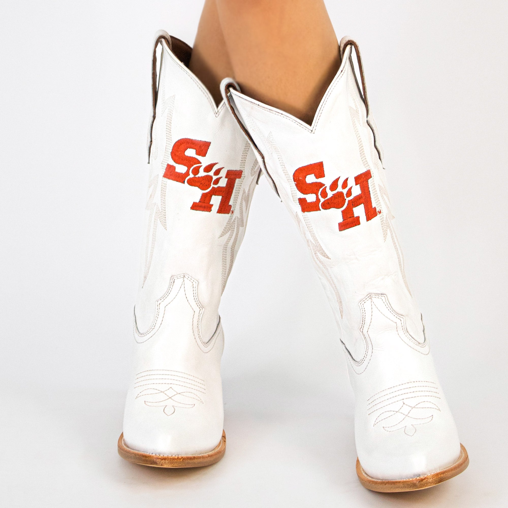 A fan favorite, the Leighton cowgirl boots perfectly blend team pride and western style. The perfect choice for game days, tailgates and everything in between, they're crafted for all-day comfort so you can show your Bearkats pride with every step. Eat 'Em Up Kats!