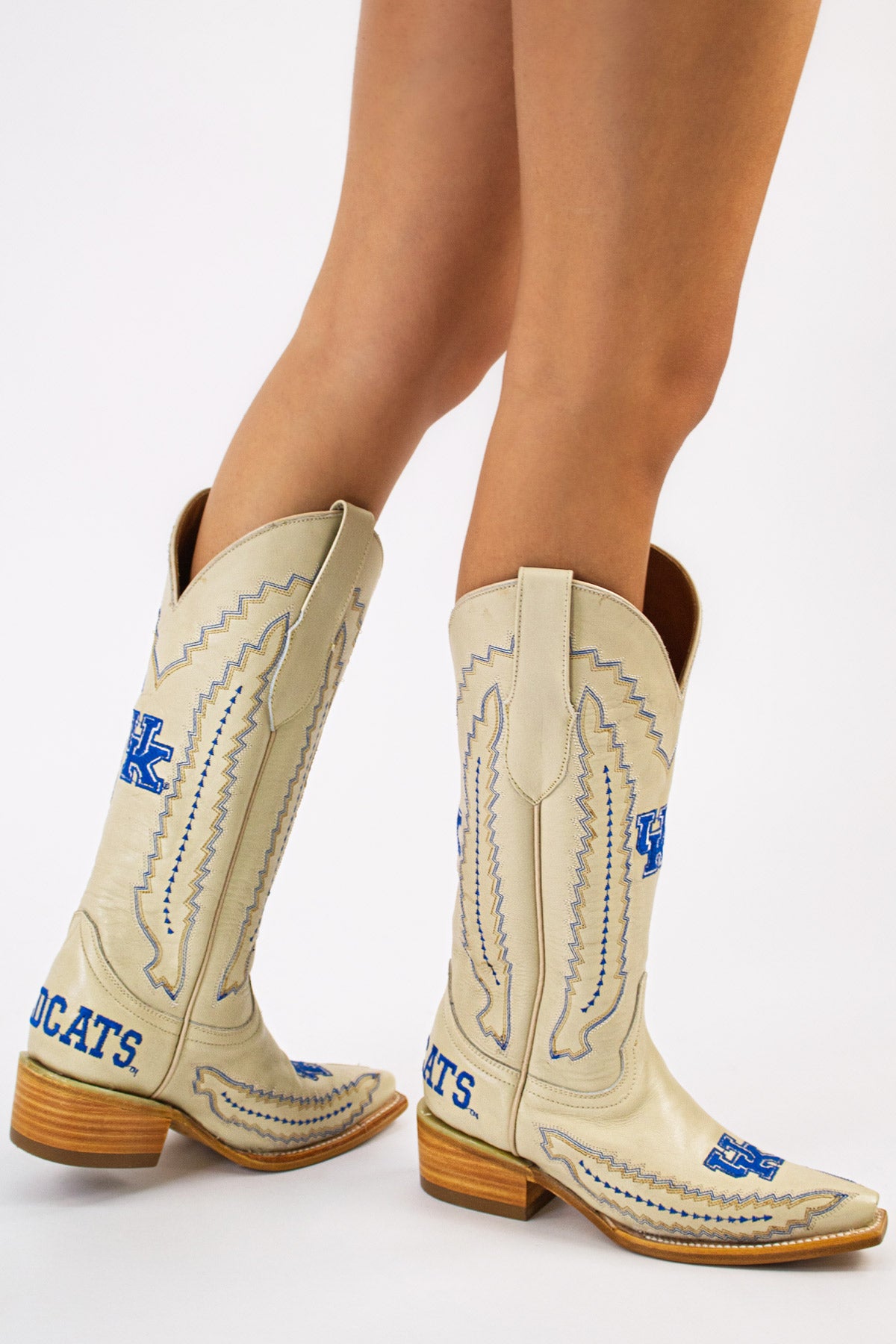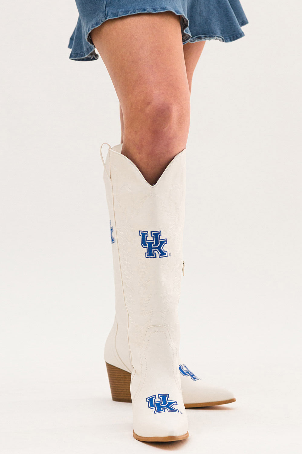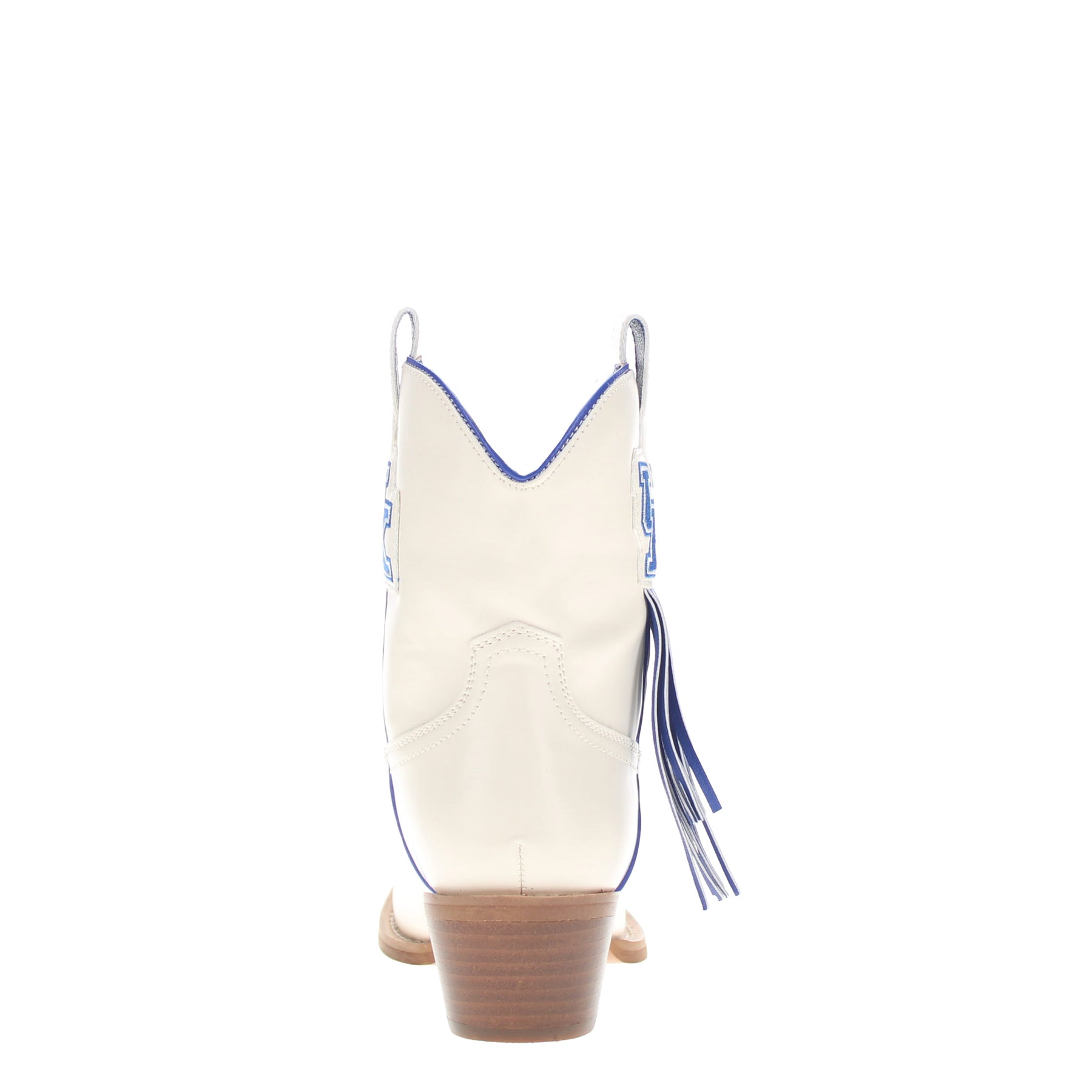 Meet the Lucy, a bold new take on western tradition. Officially licensed for The University of Kentucky. The Lucy pairs sleek bone PU leather with the Kentucky logo and playful fringe for a standout game day look. With its modern silhouette and stacked heel, this boot delivers both comfort and style for every occasion. Go Wildcats!