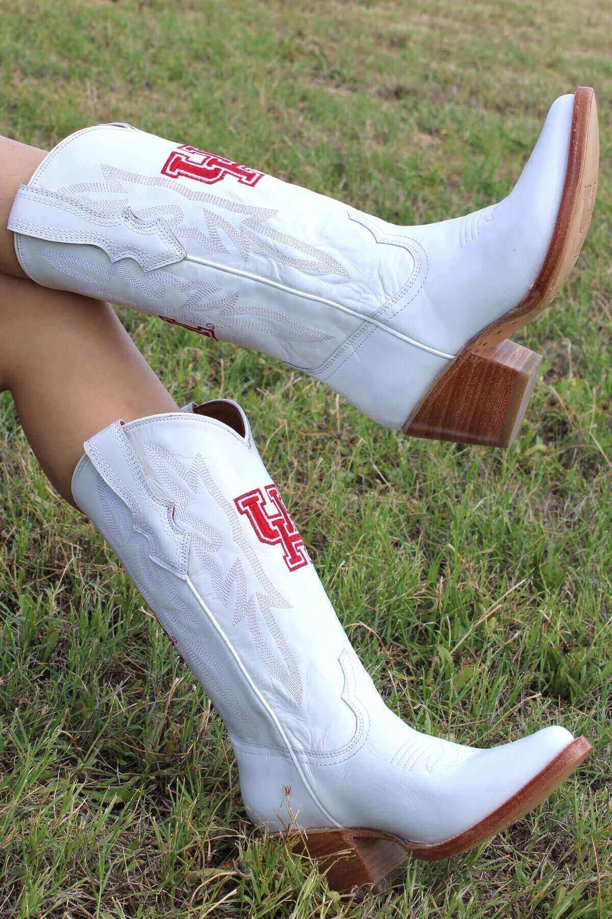 Step into game day with pride and style wearing our brand new officially licensed University of Houston cowboy boots. The Cougars logo is prominently displayed on the foot, making it clear where your allegiances lie. Whether you’re at the game, tailgating, or just going about your day, proudly showcase your University of Houston Cougars pride with every step.