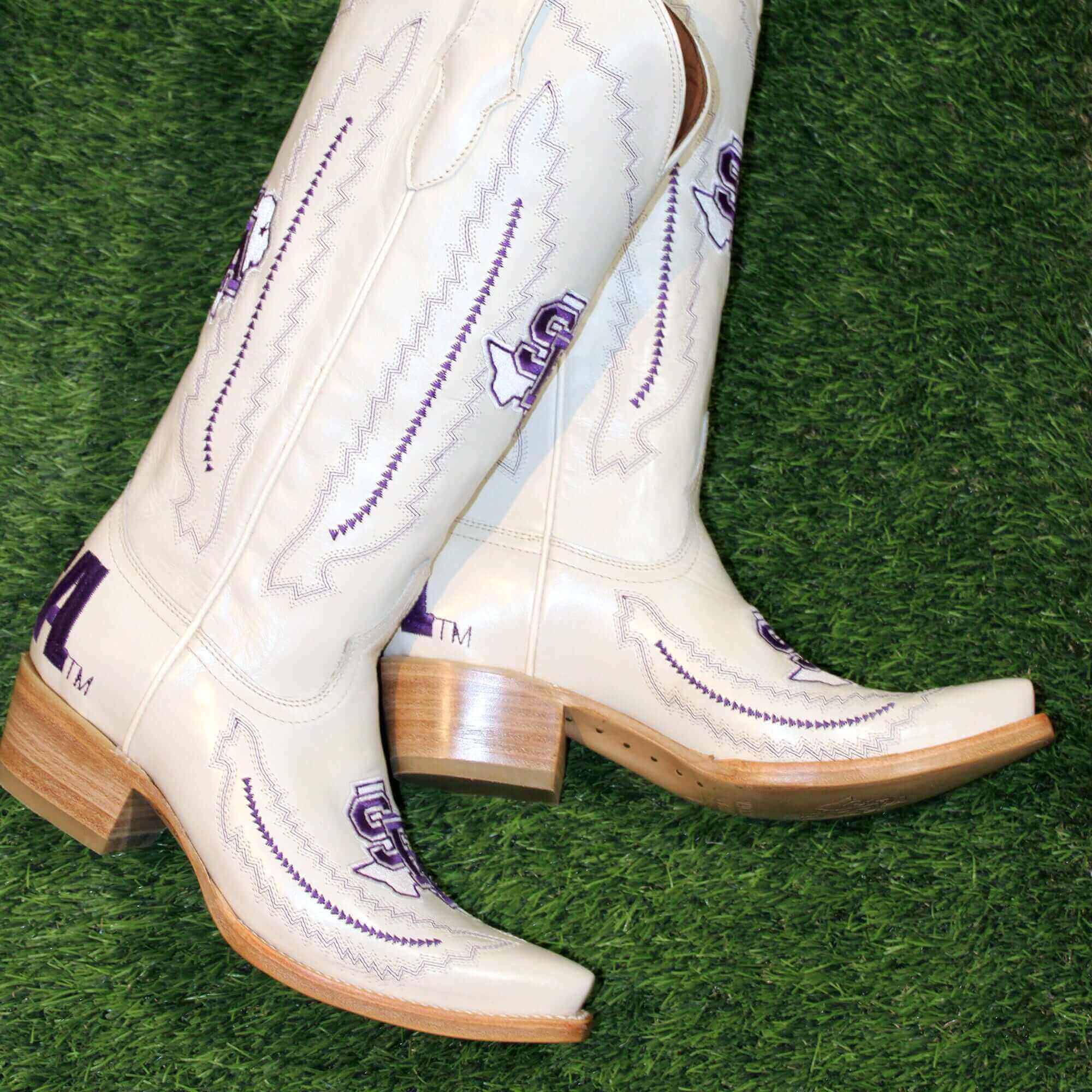 Step into game day with pride and style wearing our brand new officially licensed Stephen F. Austin State University cowboy boots. The SFA Lumberjacks logo is prominently displayed on the foot, making it clear where your allegiances lie. Whether youβre at the game, tailgating, or just going about your day, proudly showcase your Lumberjacks pride with every step.