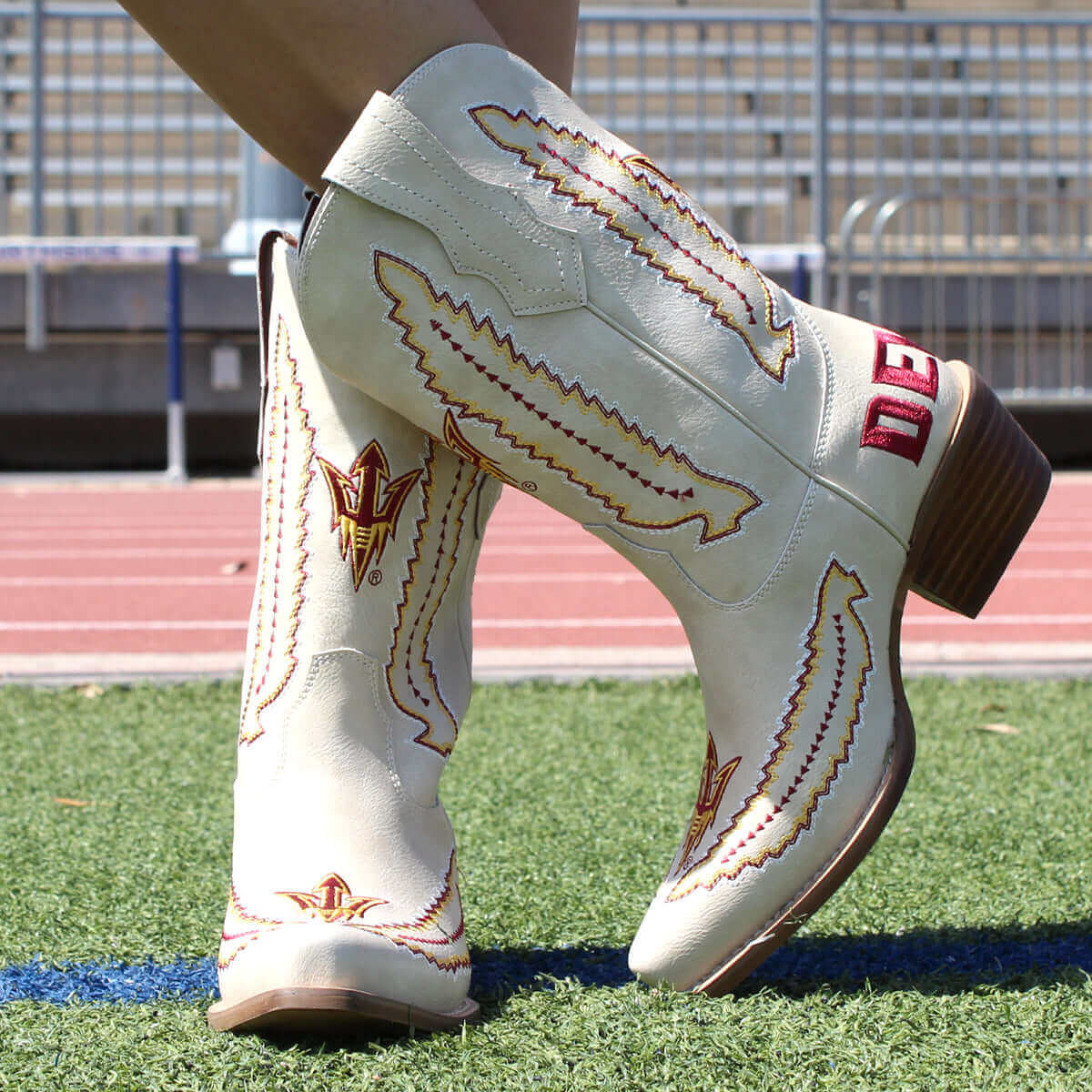 Meet the Mimi - a spirited twist on a fan favorite. Officially licensed for Arizona State University, the Mimi offers a shorter, budget-friendly option for those who want to showcase their school pride in style. Made from durable PU leather, the Mimi delivers the same vibrant stitch pattern you love, at an affordable price.