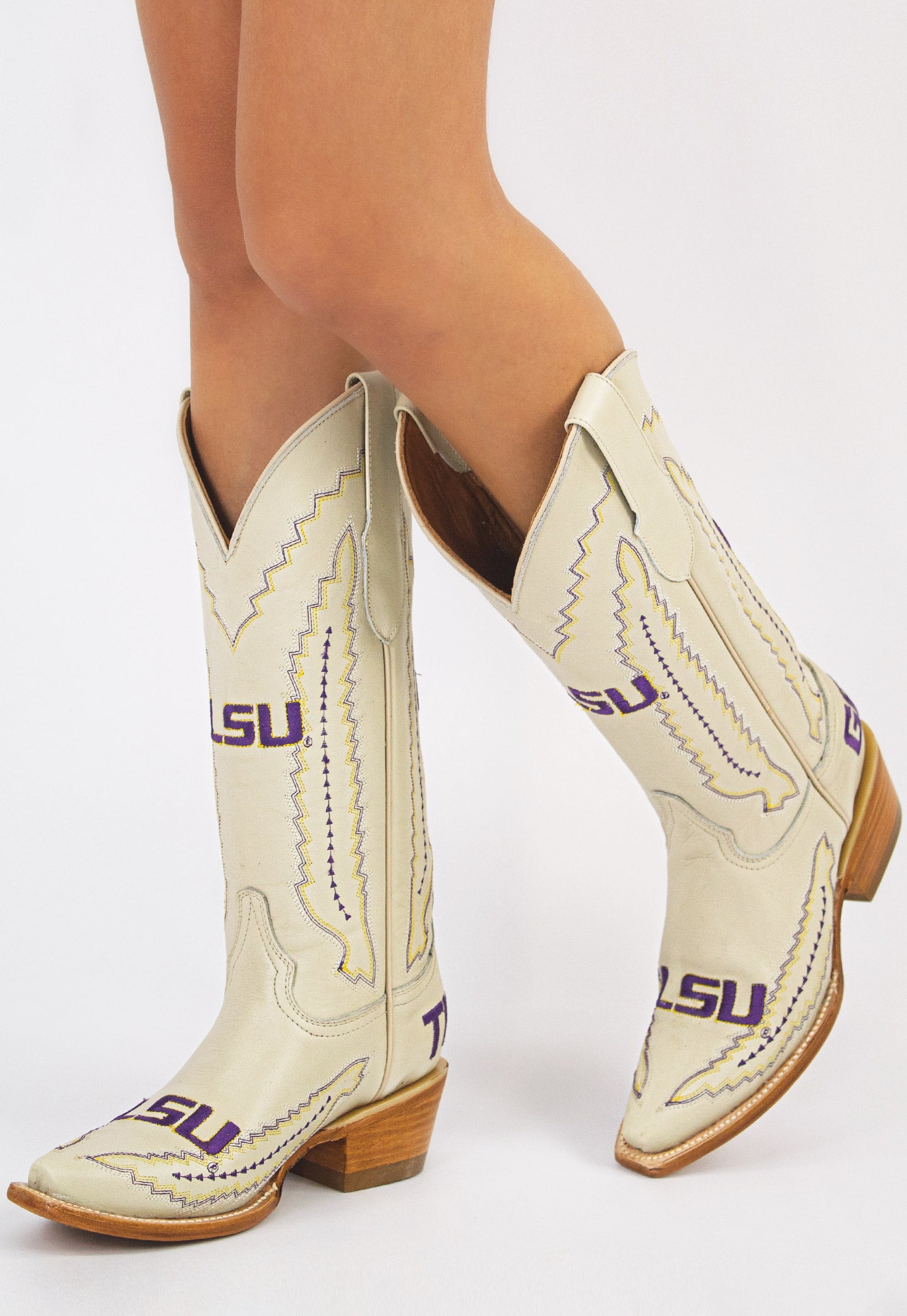 The perfect mix of school pride and Texas charm. Featuring vibrant purple and gold stitching, these boots are designed to stand out on game day and beyond. More than just footwear, theyβre a bold expression of your Tiger spirit with every step. Geaux Tigers!