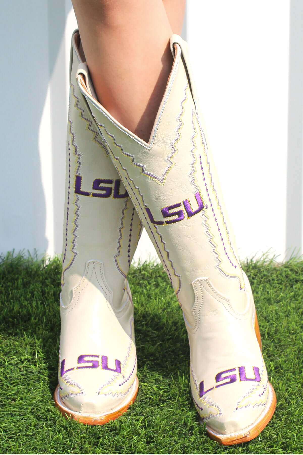Our best seller for a reason, The Naomi is the perfect mix of school pride and Southern charm. Featuring vibrant LSU purple and gold stitch patterns and officially licensed logos, these boots are designed to stand out on game day and beyond. More than just footwear, they’re a bold expression of your Tigers spirit with every step. Geaux Tigers!