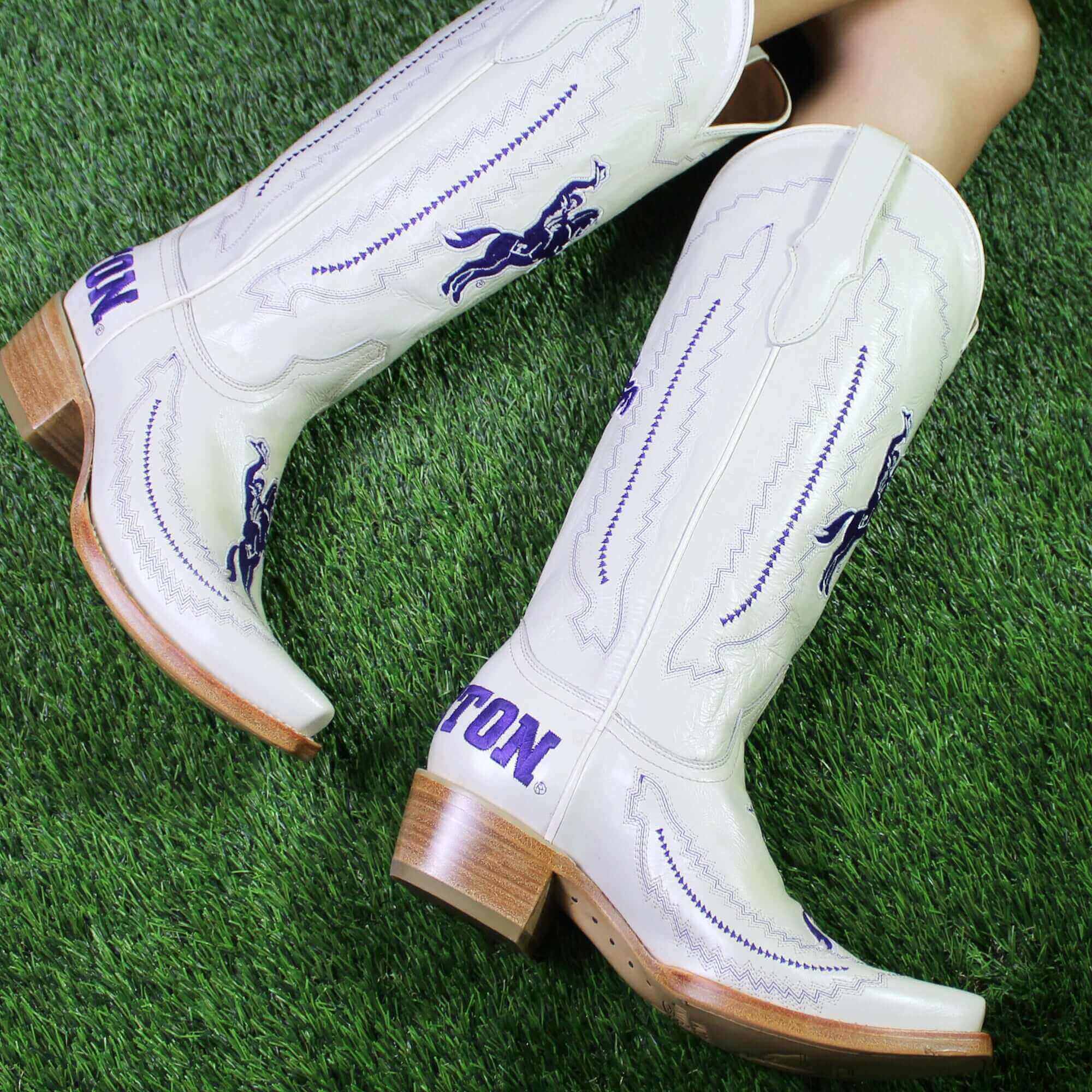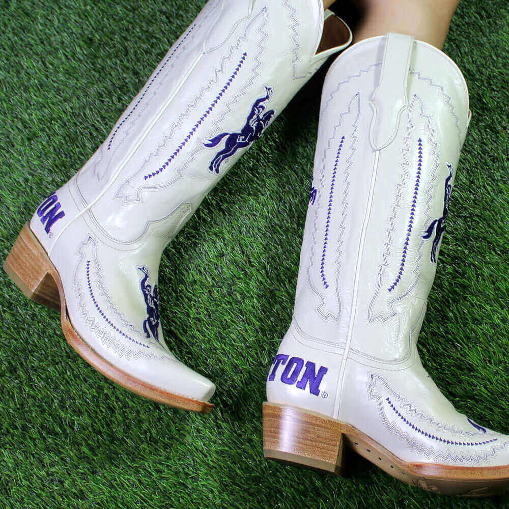 Our best seller for a reason, The Naomi is the perfect mix of school pride and Texan charm. Featuring vibrant purple stitch patterns and officially licensed logos, these boots are designed to stand out on game day and beyond. More than just footwear, they’re a bold expression of your Texans spirit with every step. Bleed Purple!