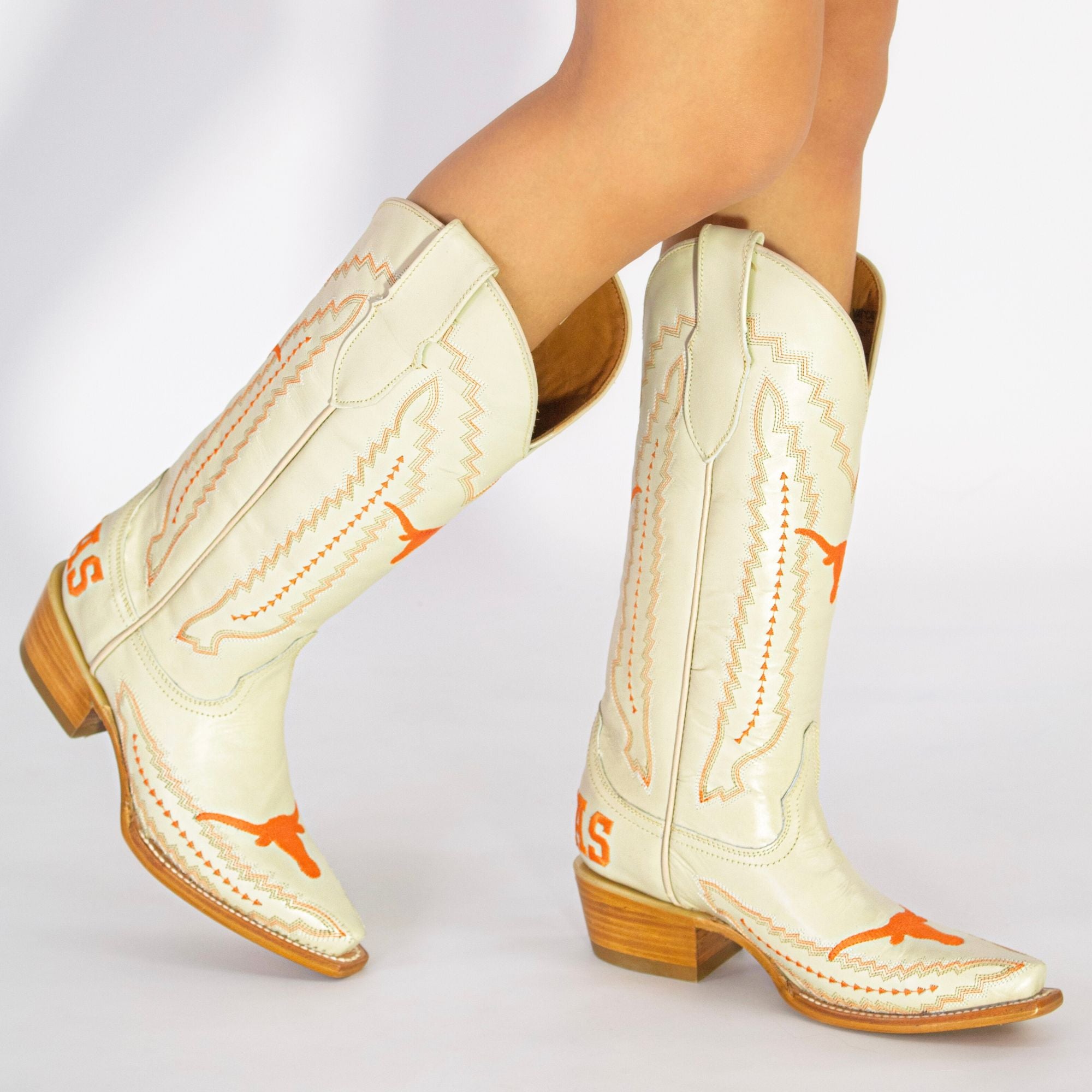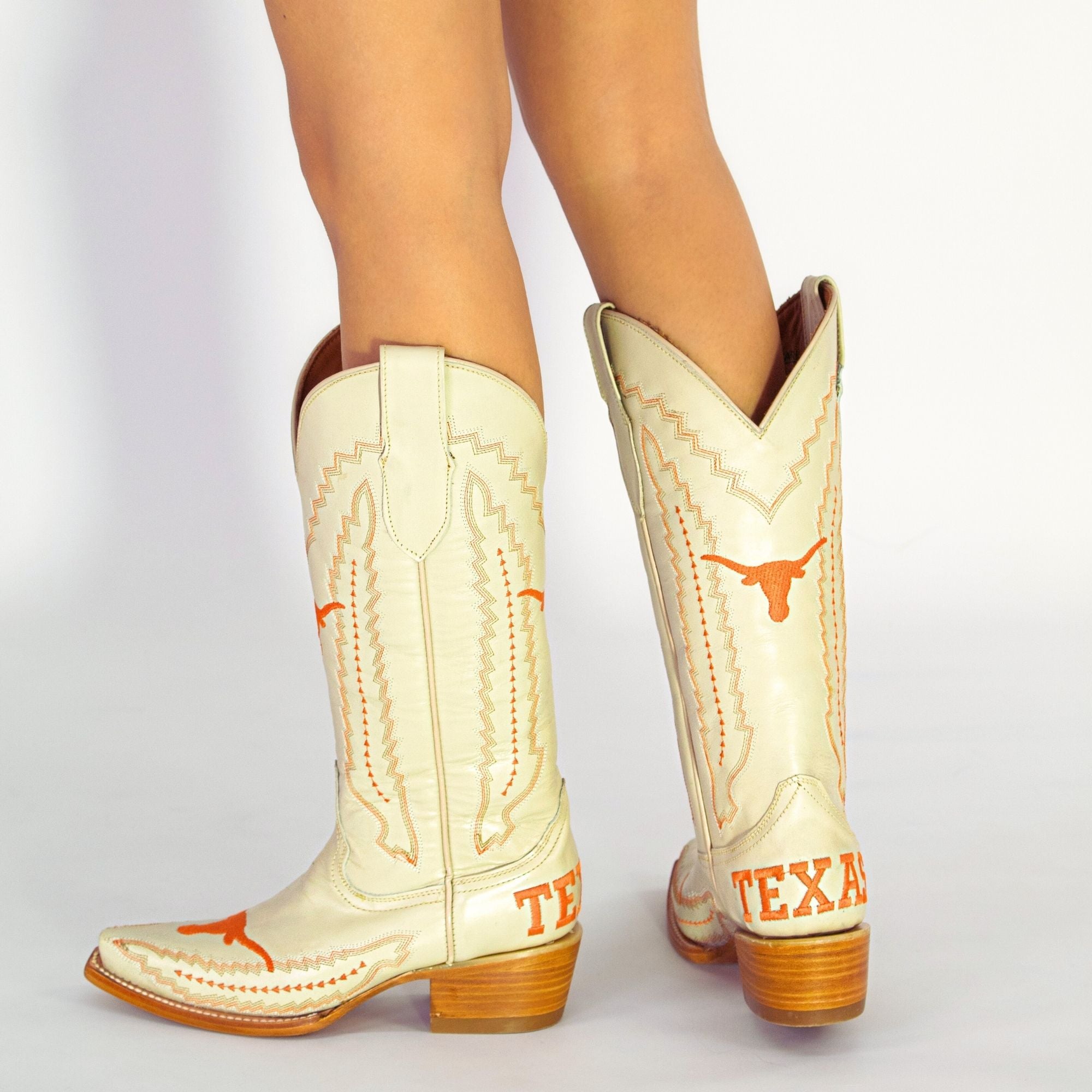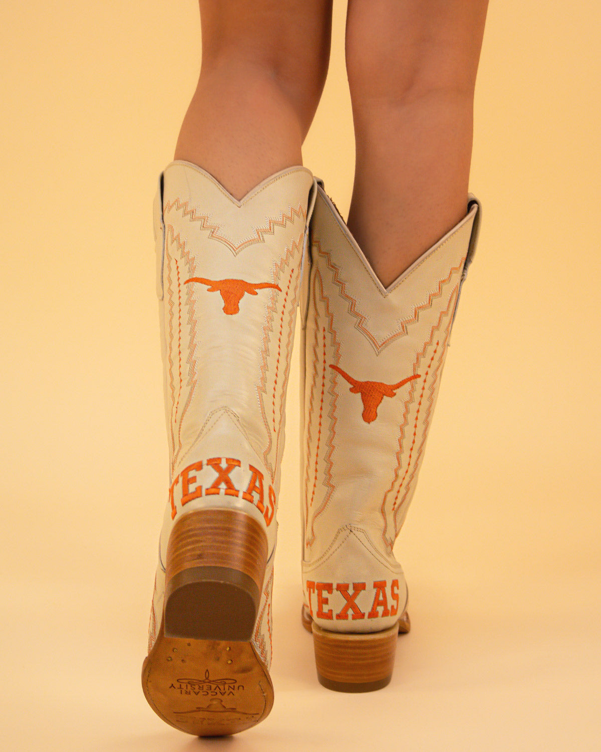 Our best seller for a reason, The Naomi is the perfect mix of school pride and Texas charm. Featuring vibrant burnt orange stitching and the iconic Longhorn logo, these boots are designed to stand out on game day and beyond. More than just footwear, they’re a bold expression of your Longhorn spirit with every step. Hook ’Em, Horns!