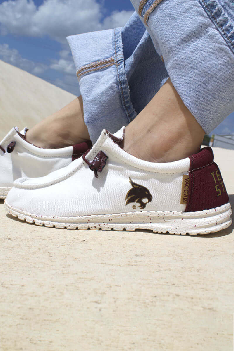 Take your Bobcats pride to the next level with the Nate, officially licensed for the Texas State University. This casual slip-on shoes is made with breathable canvas and features a lightweight flexible outsole and elastic laces. Both comfortable and stylish, these slip-on shoes feature officially licensed logos for a touch of school spirit. Whether you're cheering in the stands on gameday or walking around campus, the lightweight construction and cushioned insoles ensure all day comfort. Eat 'em Up Cats!