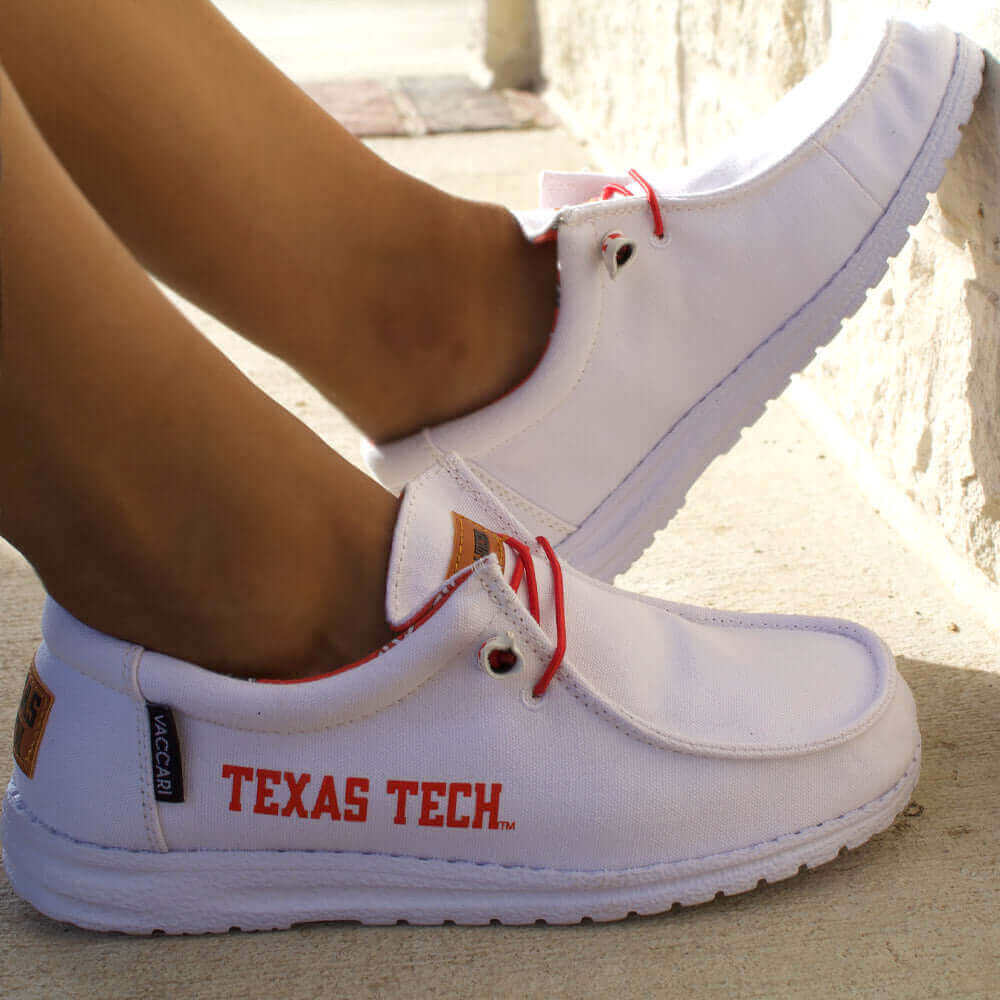 Take your Red Raiders pride to the next level with the Nate, officially licensed for Texas Tech University. This casual slip-on shoes is made with breathable canvas and features a lightweight flexible outsole and elastic laces. Both comfortable and stylish, these slip-on shoes feature officially licensed logos for a touch of school spirit. Whether you're cheering in the stands on gameday or walking around campus, the lightweight construction and cushioned insoles ensure all day comfort. Guns Up!