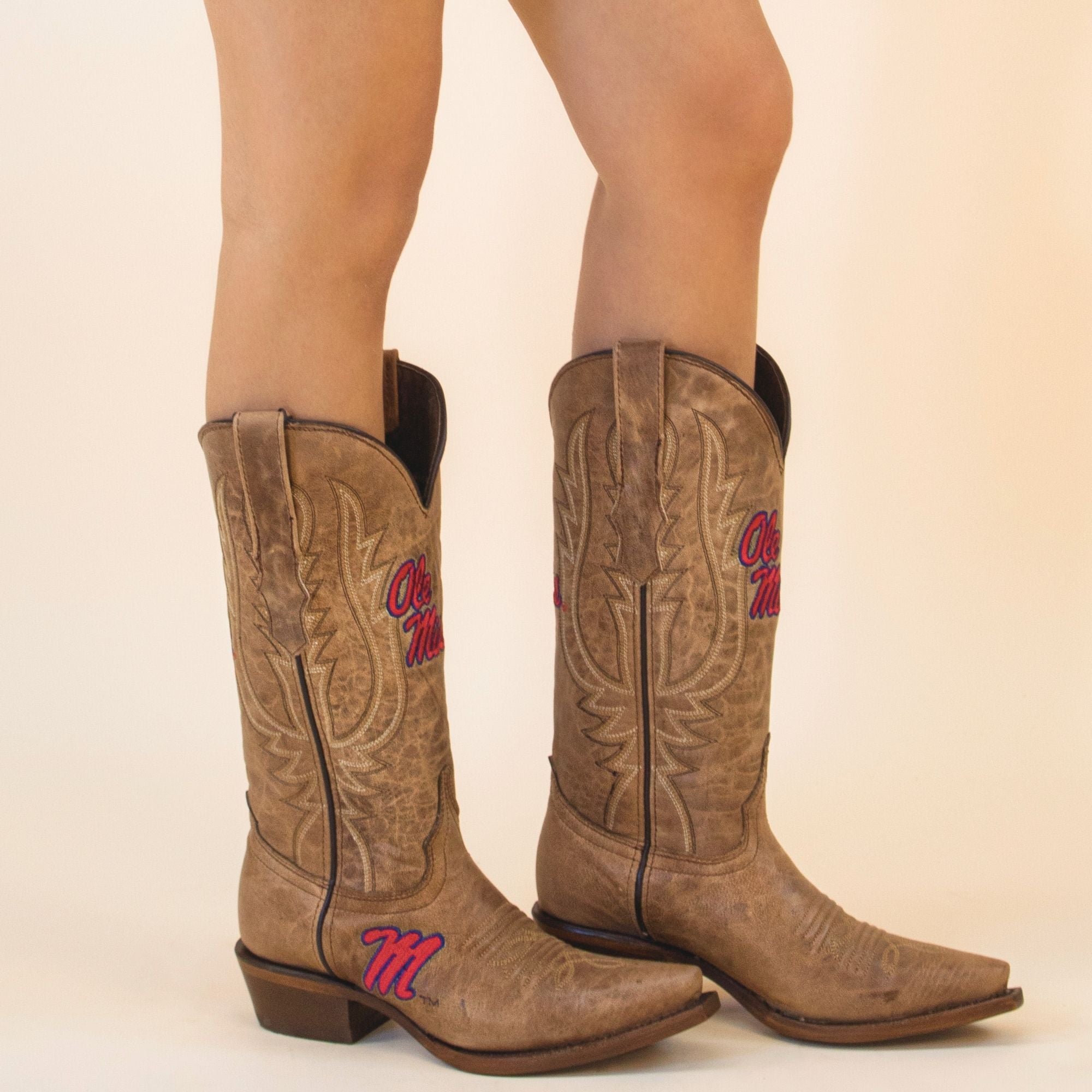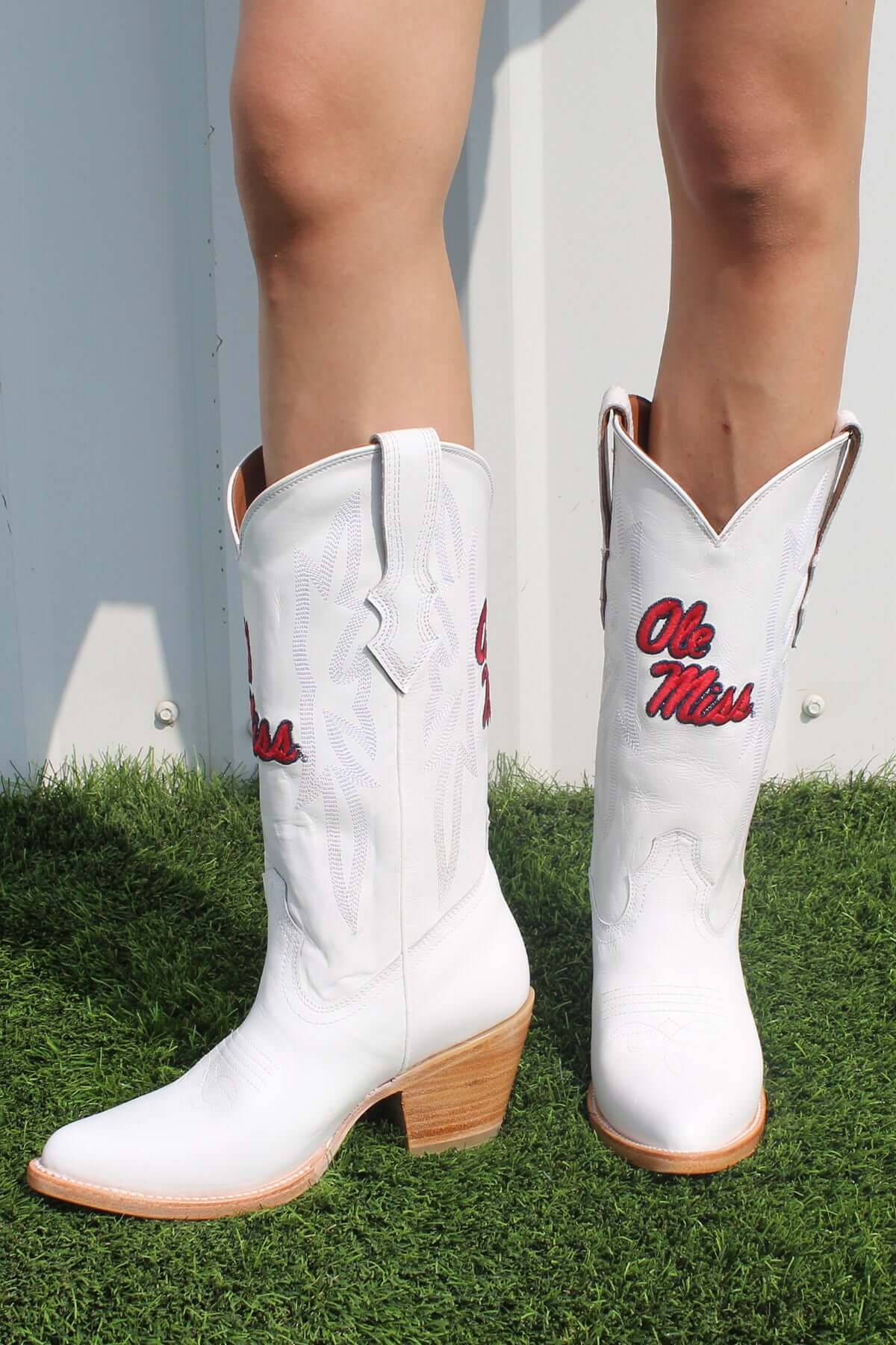 Paige cowgirl boots blend timeless western style with school spirit, featuring university logos on the upper and foot, perfect for pairing with jeans while still repping your team spirit. Designed for both style and comfort, they're perfect for game days, two-stepping, and everything in between.