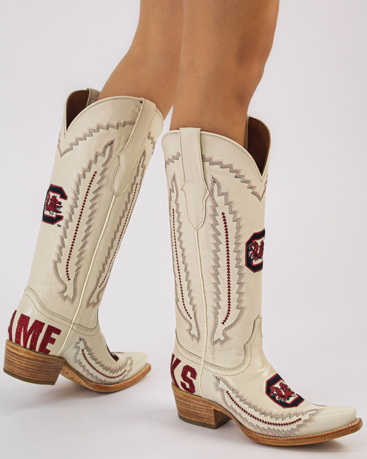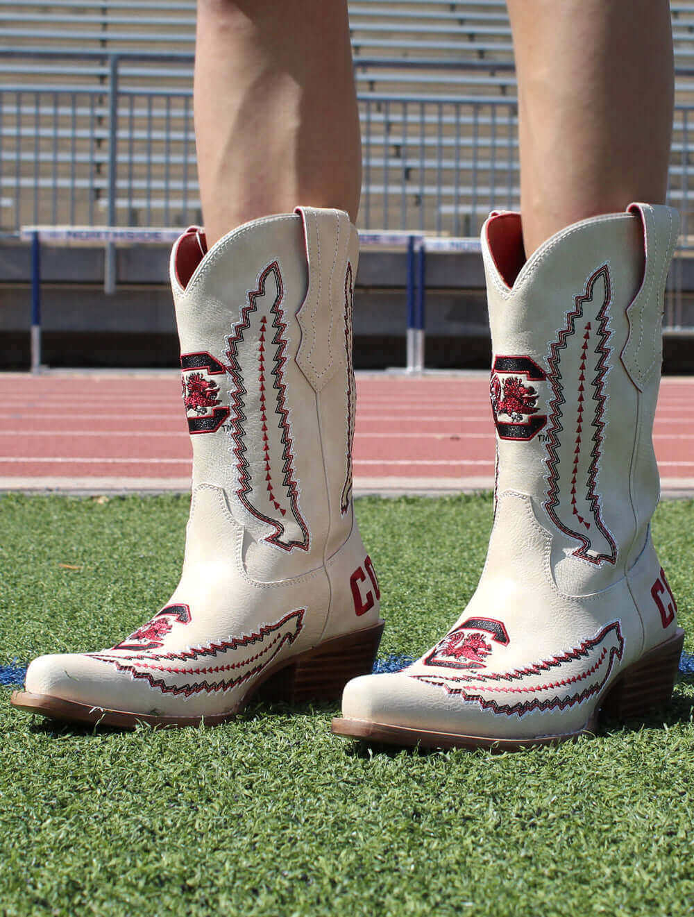 Paige cowgirl boots blend timeless western style with school spirit, featuring university logos on the upper and foot, perfect for pairing with jeans while still repping your team spirit. Designed for both style and comfort, they're perfect for game days, two-stepping, and everything in between.