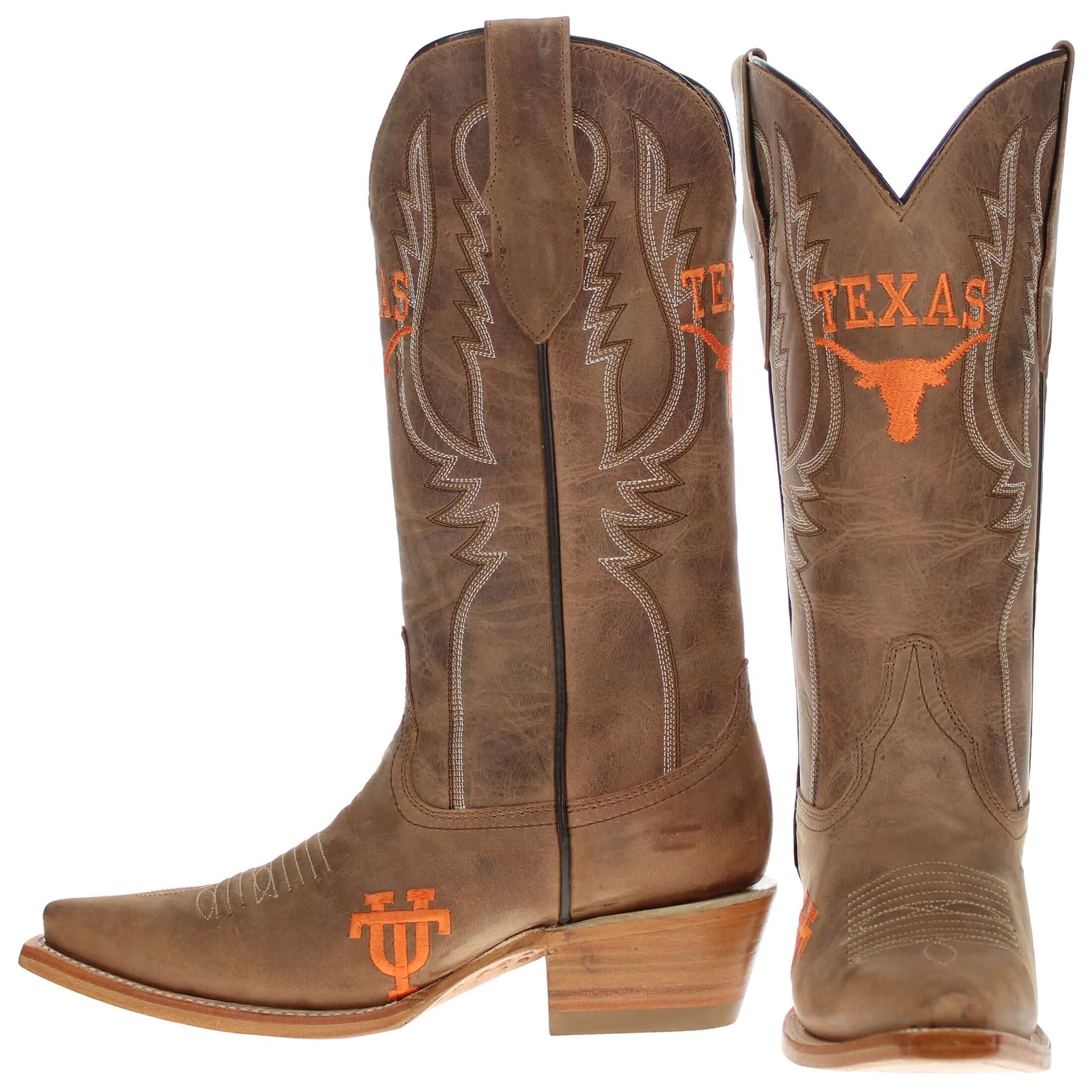 Paige cowgirl boots blend timeless western style with school spirit, featuring university logos on the upper and foot, perfect for pairing with jeans while still repping your team spirit. Designed for both style and comfort, they're perfect for game days, two-stepping, and everything in between.