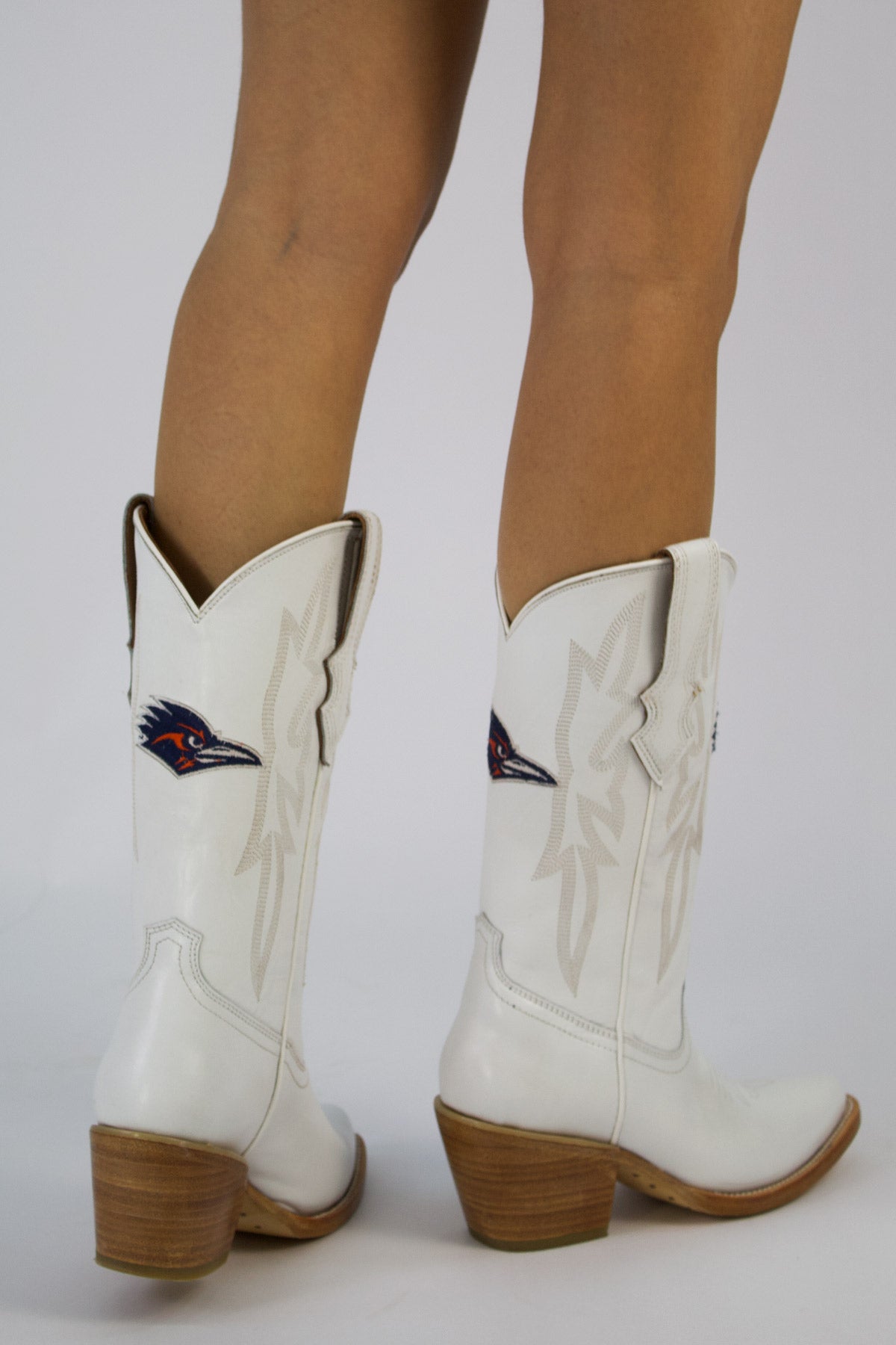 Paige cowgirl boots blend timeless western style with school spirit, featuring university logos on the upper and foot, perfect for pairing with jeans while still repping your team spirit. Designed for both style and comfort, they're perfect for game days, two-stepping, and everything in between.