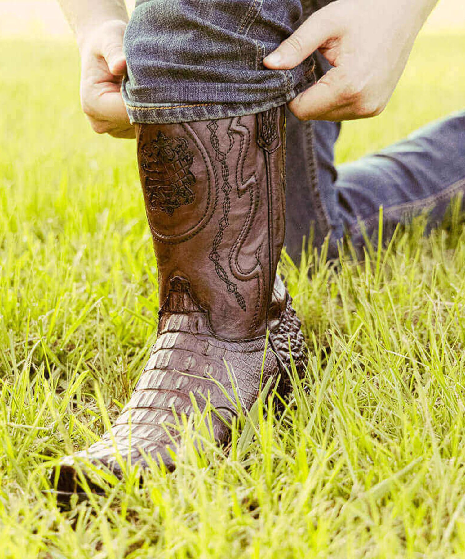 The Zander make a bold statement for those who prize individuality and enjoy standing out from the pack. These boots are made from American Alligator with a unique horizontal headcut and feature a broad square toe. These boots personify the bold and unique work of Mother Nature.
