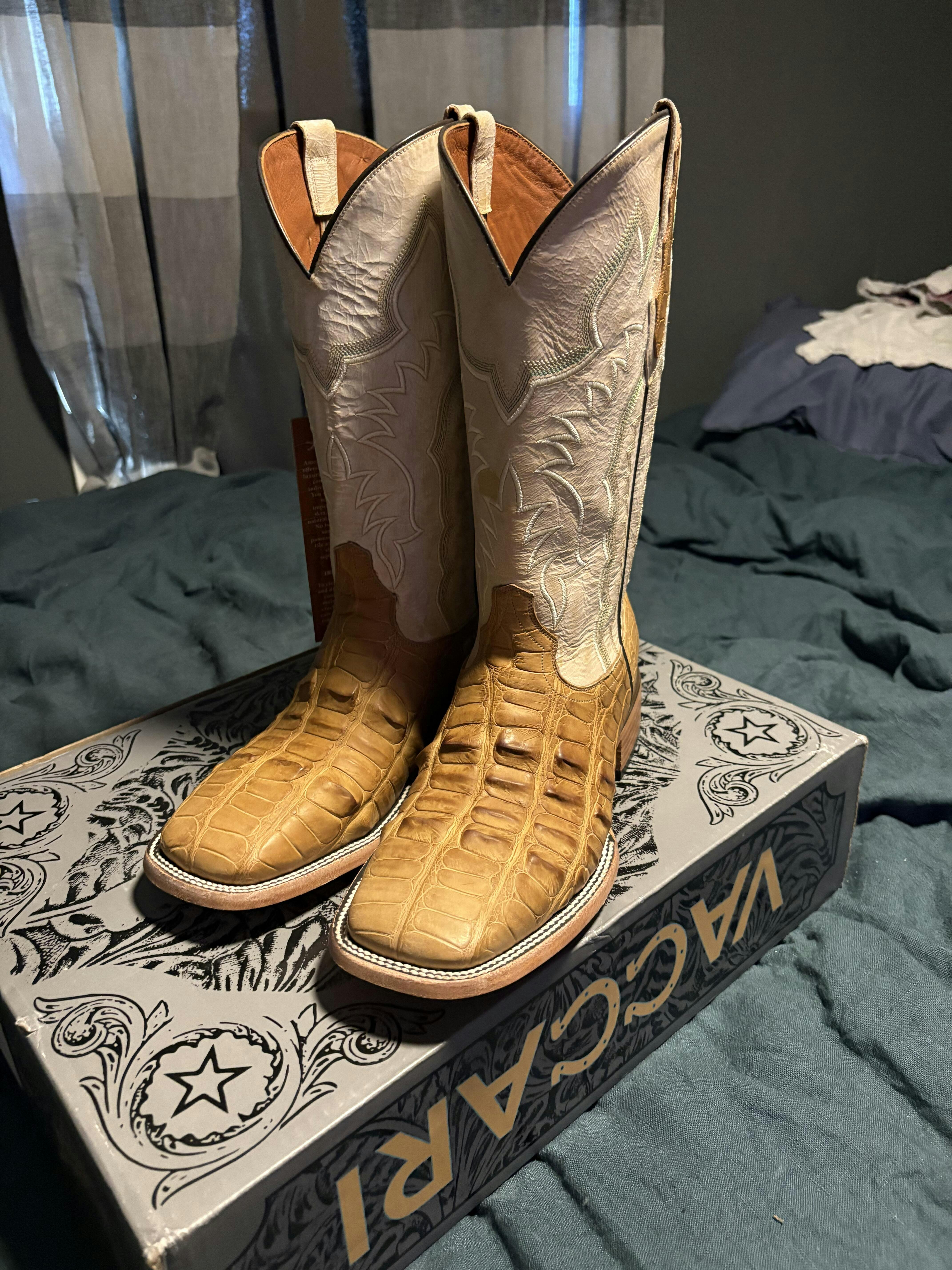 The Zion make a bold statement for those who prize individuality and enjoy standing out from the pack. These boots are made from American Alligator with a unique horizontal head cut and feature a broad square toe. These boots personify the bold and unique work of Mother Nature.